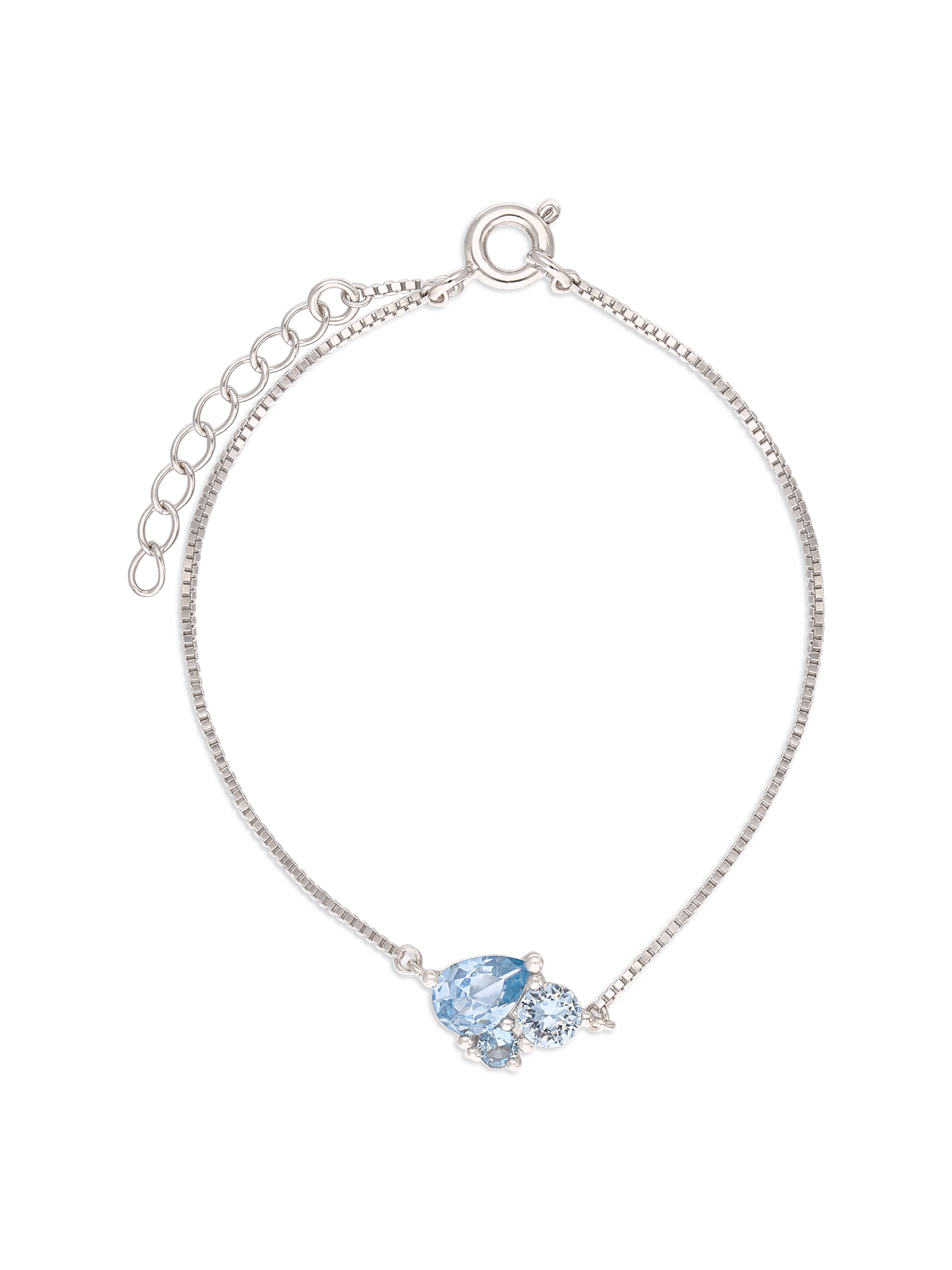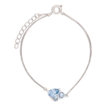 Pulseras Delicadas, Plata 925 bañada en rodio, Zirconia cúbica artificial, Azul, Celeste, Lágrima, Círculo, Artificial, Color plateado, 1.86 g