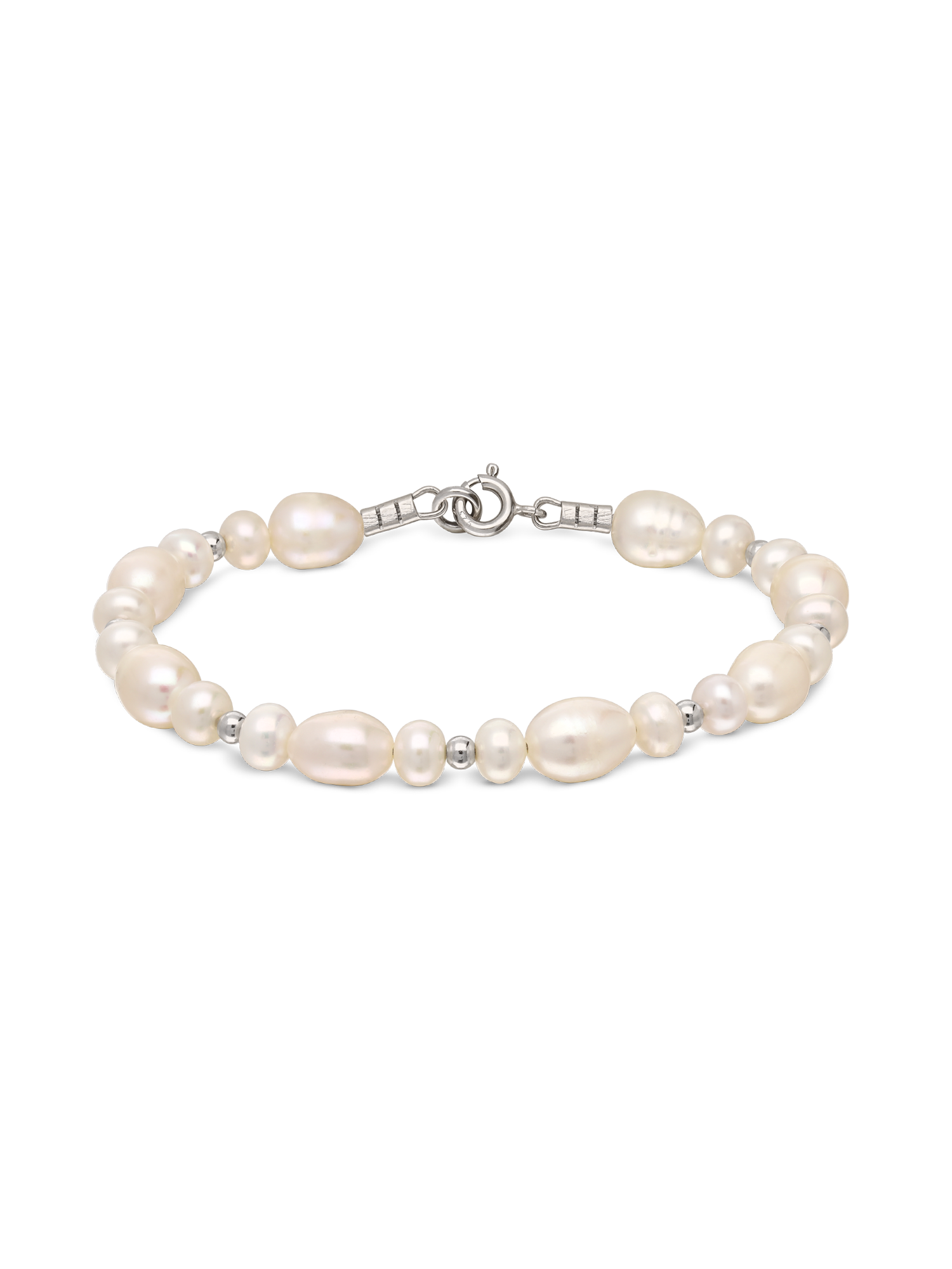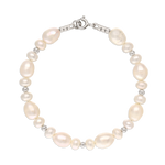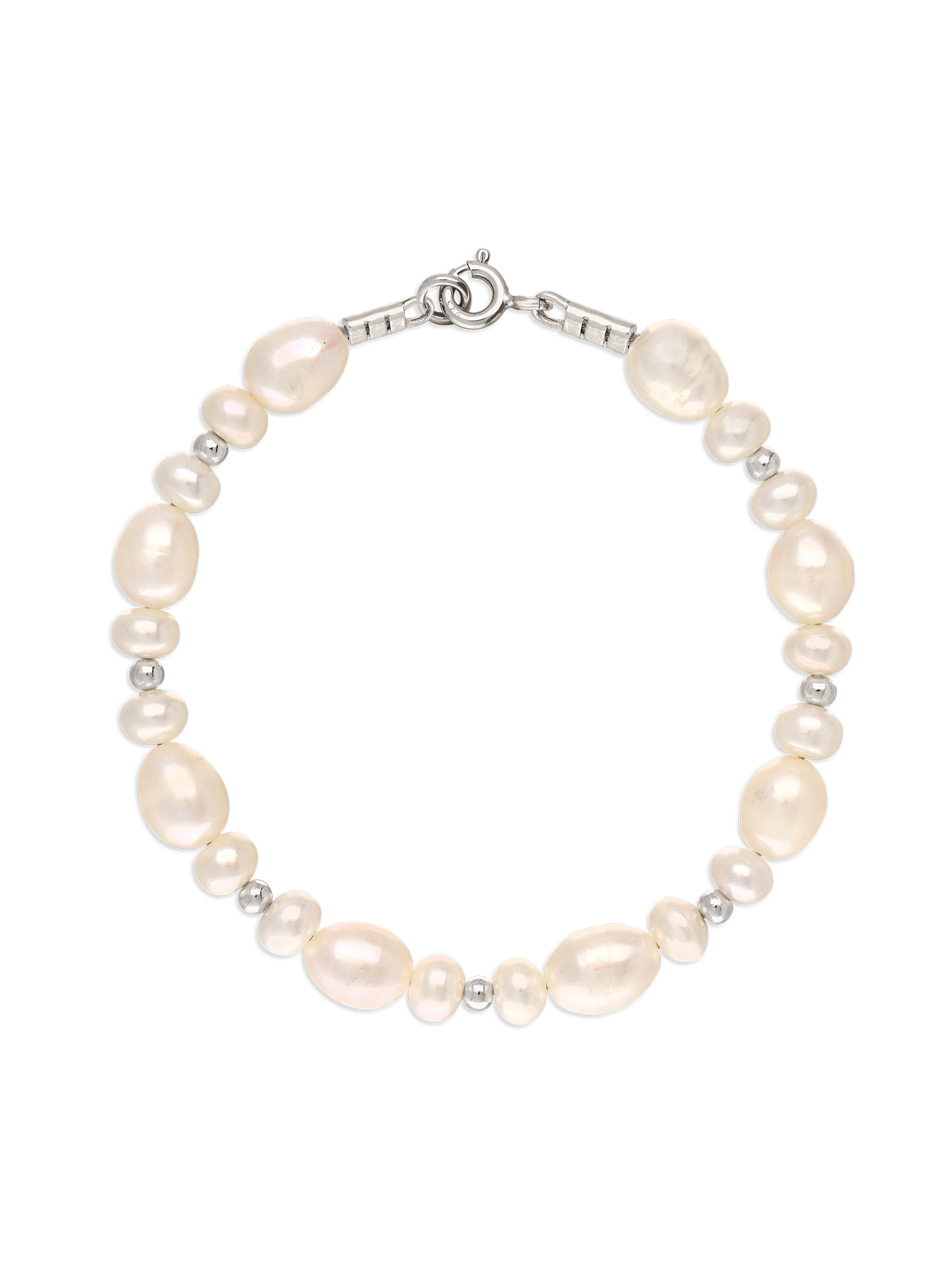 Pulsera de perlas, Plata 925 bañada en rodio, Perla cultivada, Blanco, Círculo, Color plateado, 11.55 g