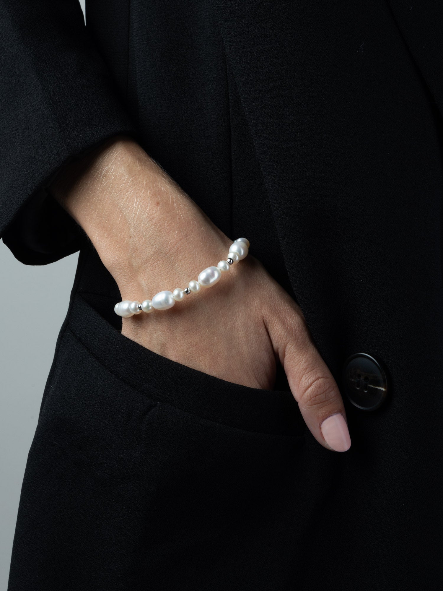 Pulsera de perlas, Plata 925 bañada en rodio, Perla cultivada