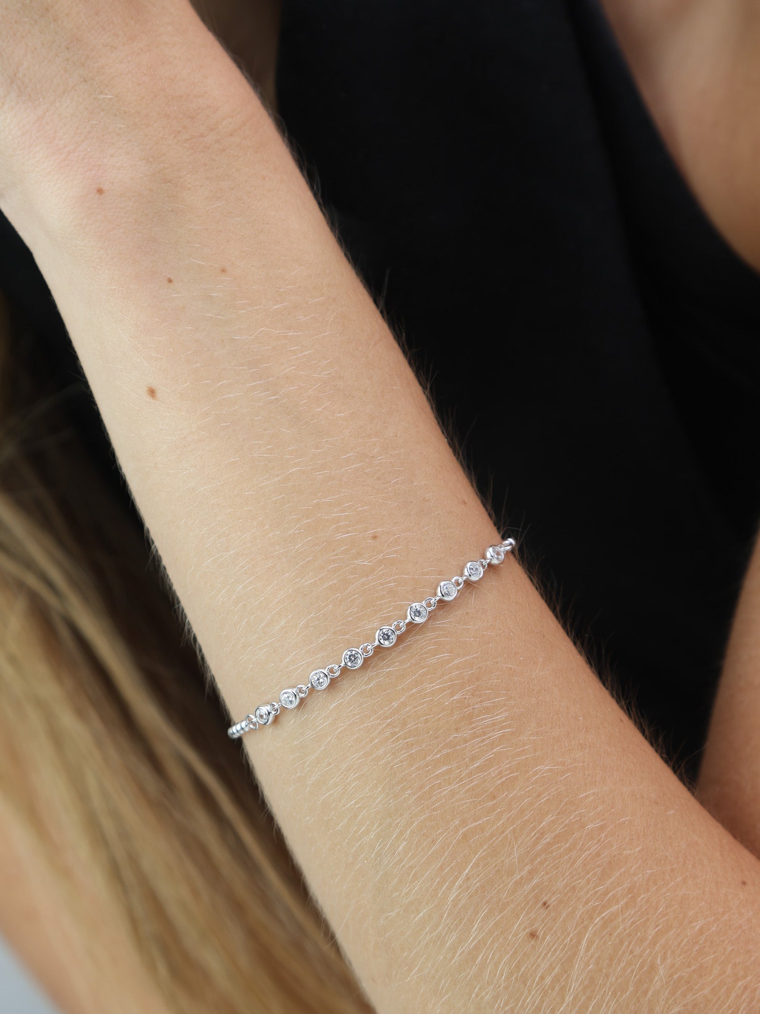 Pulseras Delicadas, Plata 925 bañada en rodio, Zirconia cúbica artificial, Claro, Círculo, Artificial, Color plateado, 3.04 g
