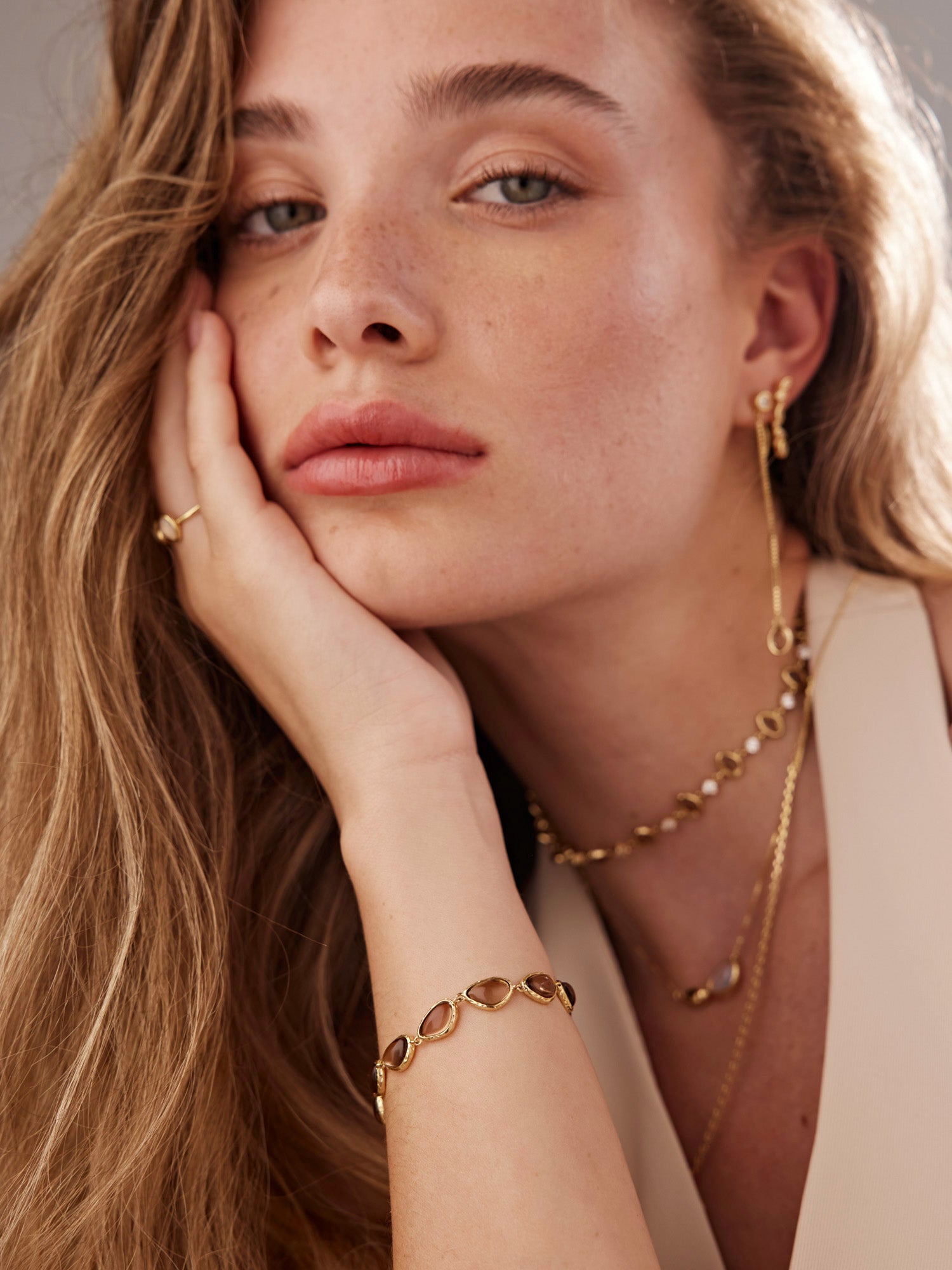 Pulseras Festivas, Bañado en oro, Vidrio de plomo, Café, Guijarros, Artificial, Color dorado, 8.27 g