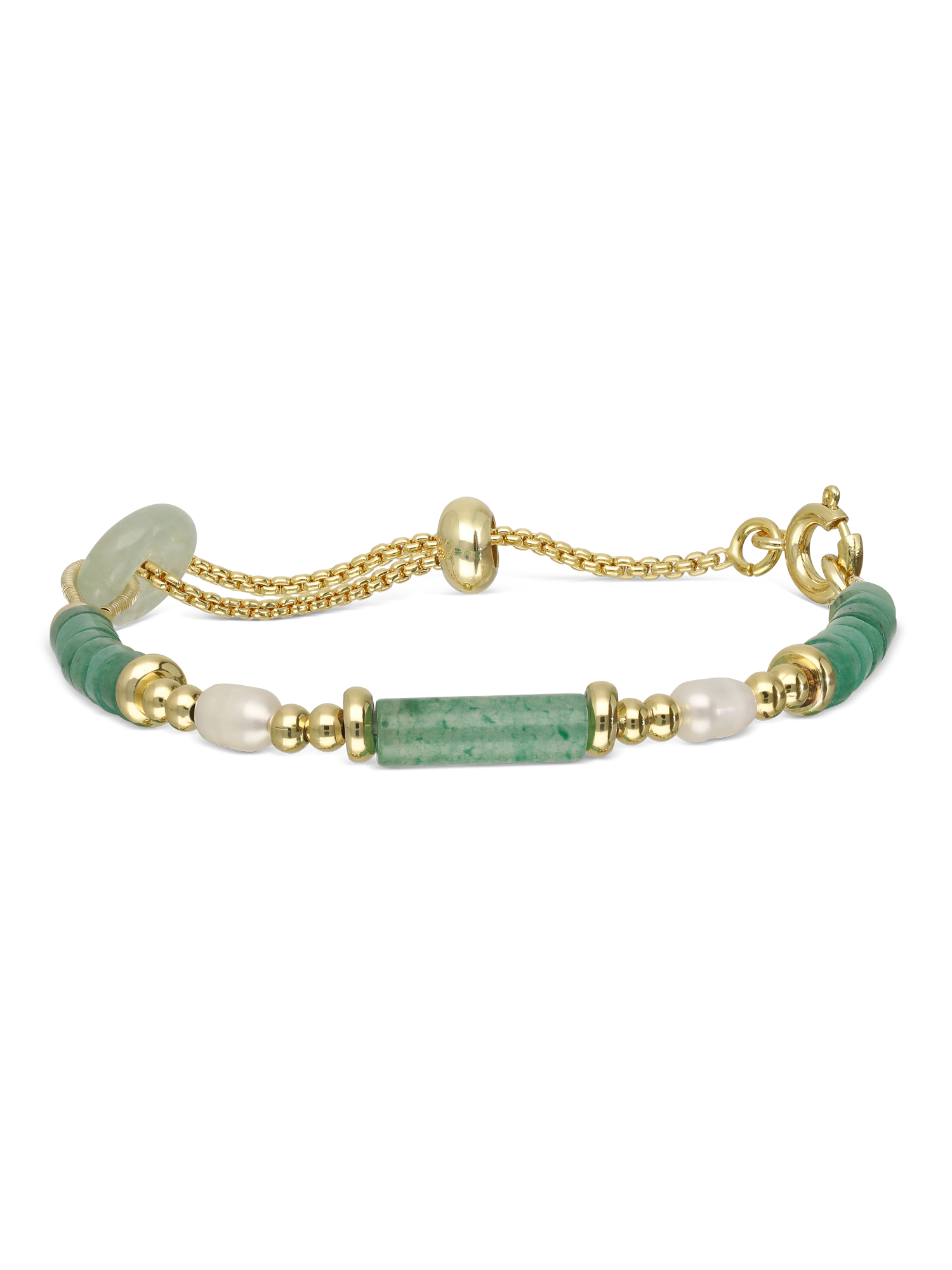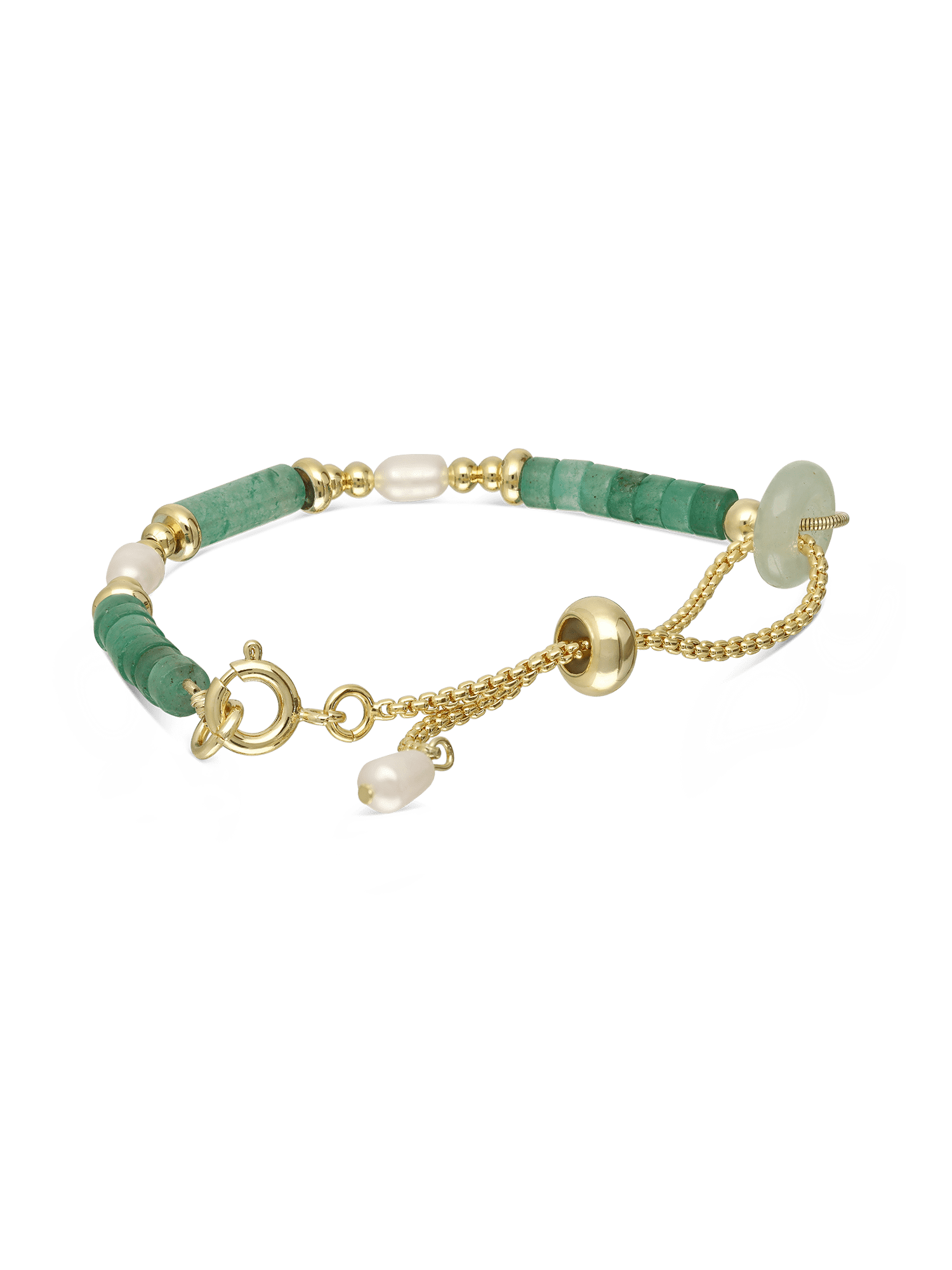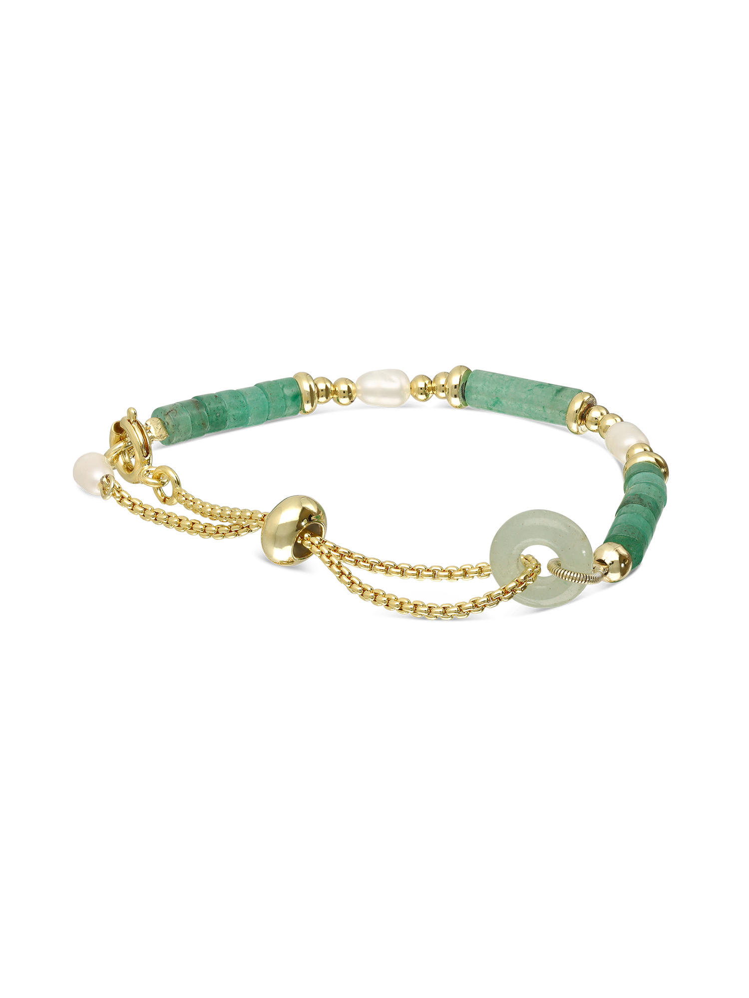 Pulsera de piedra, Bañado en oro, Aventurina artificial, Perla cultivada, Verde, Blanco, Círculo, Artificial, Color dorado, 5.54 g