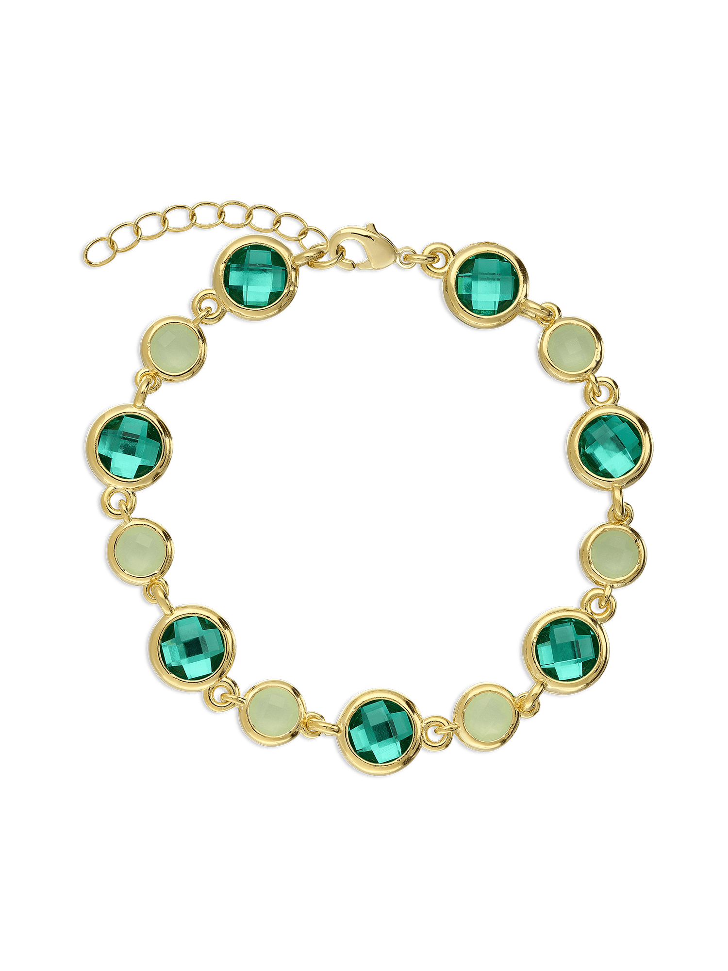 Pulseras Festivas, Bañado en oro, Vidrio de plomo, Verde, Turquesa, Círculo, Artificial, Color dorado, 10.00 g