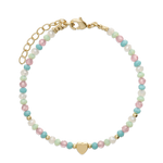 Pulsera de piedra, Bañado en oro, Vidrio de plomo, Multicolor, Corazón, Círculo, Artificial, Color dorado, 3.15 g