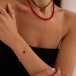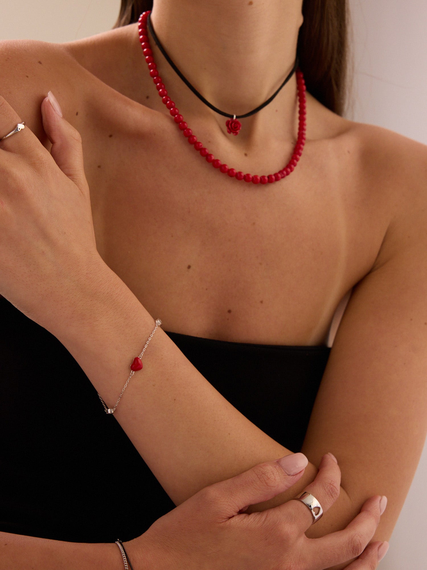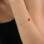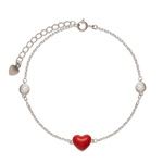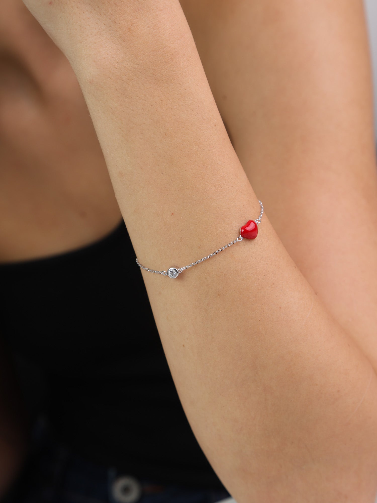 Pulseras Delicadas, Plata 925 bañada en rodio, Zirconia cúbica artificial, Esmalte, Rojo, Claro, Corazón, Círculo, Artificial, Color plateado, 2.40 g