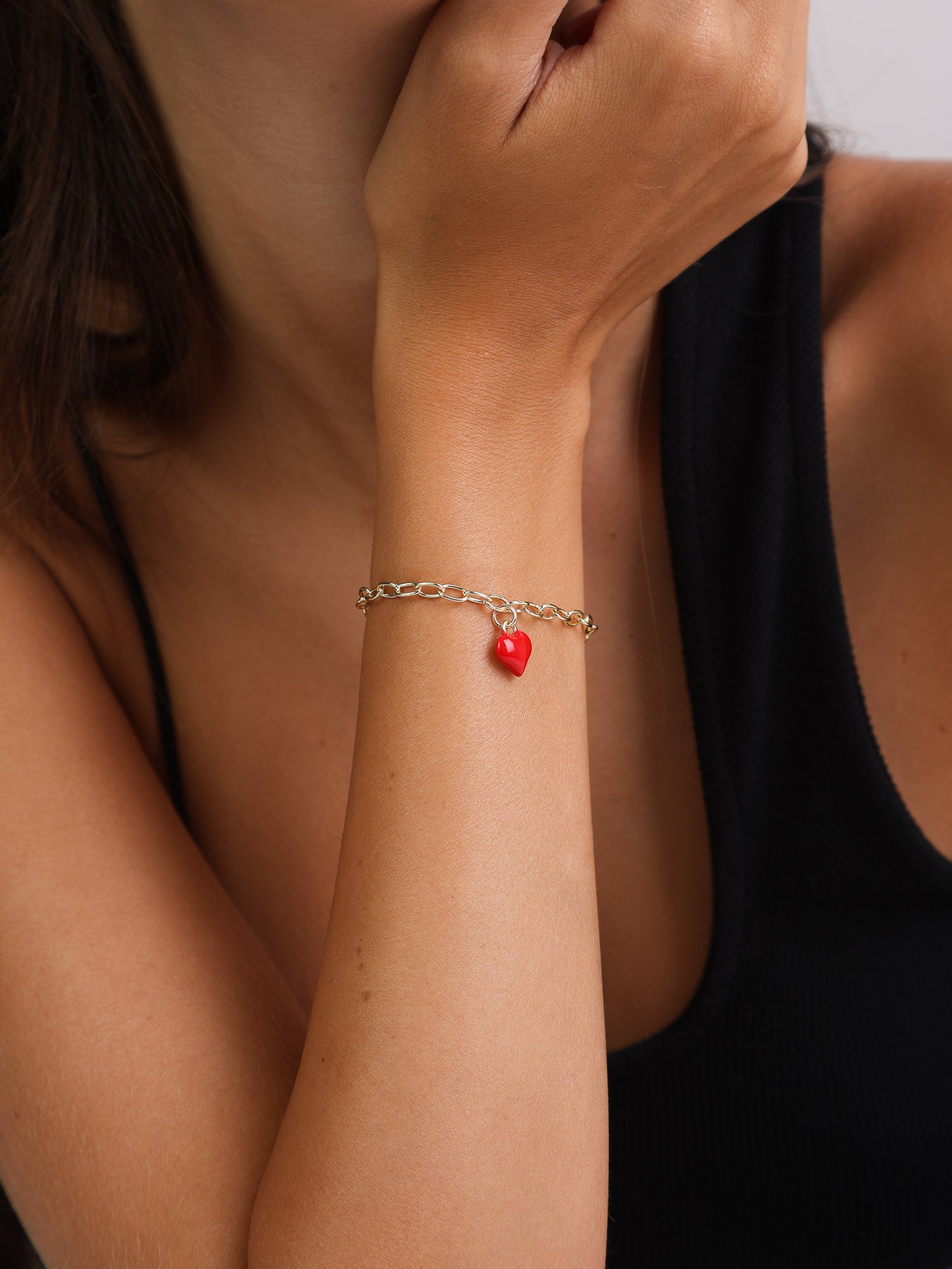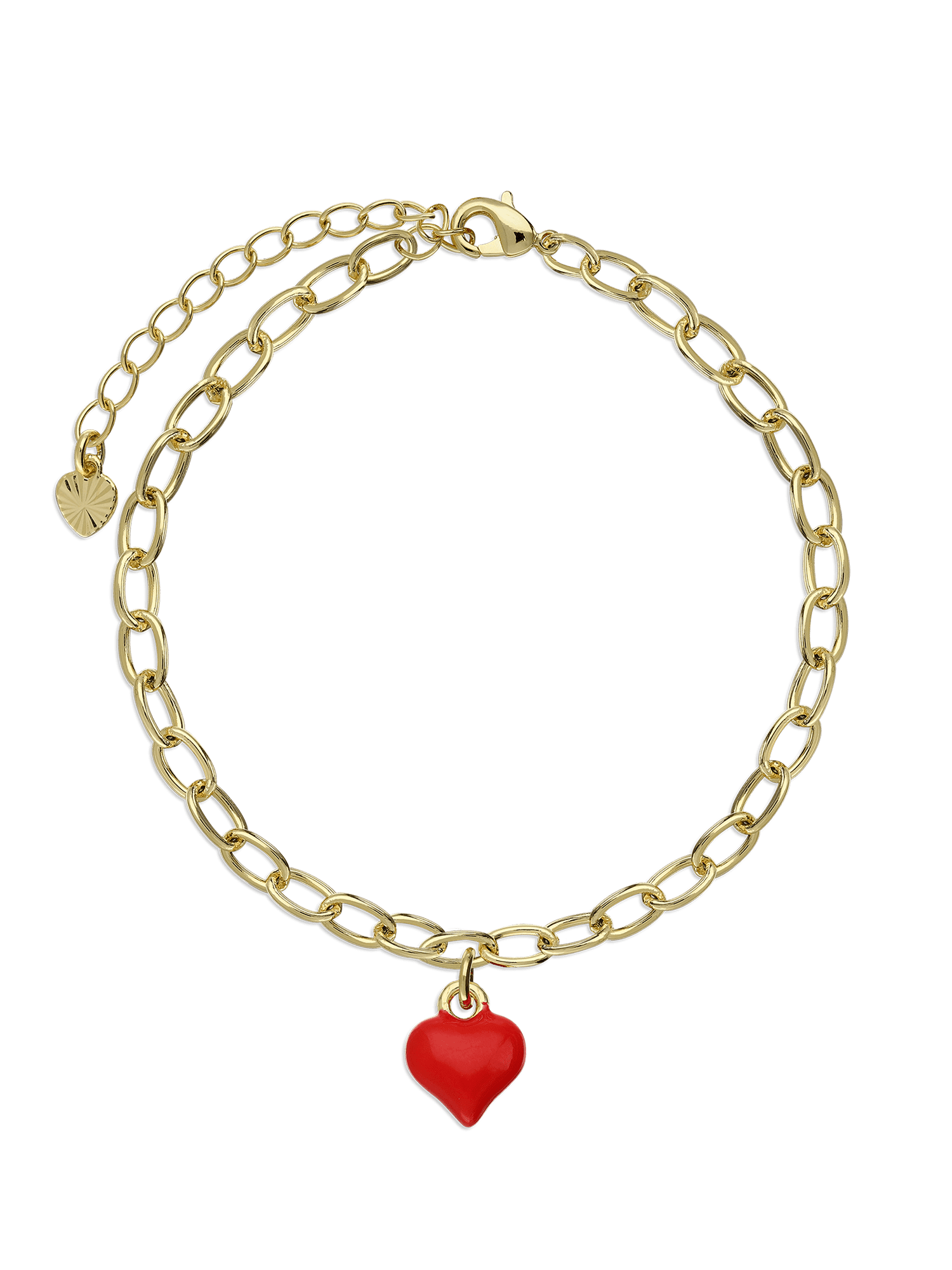 Pulseras Festivas, Bañado en oro, Esmalte, Rojo, Corazón, Artificial, Color dorado, longitud del colgante: 12.0 mm, ancho colgante: 9.5 mm, 4.25 g
