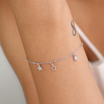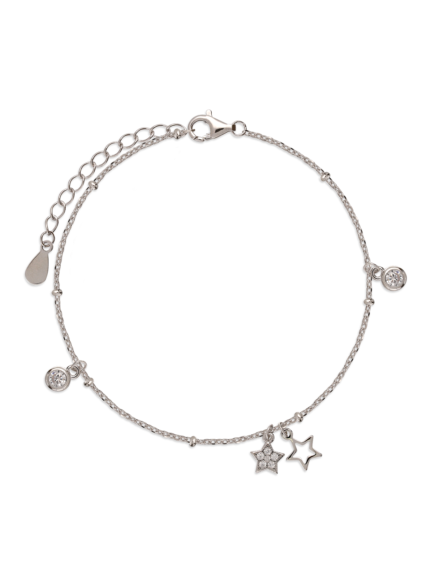 Pulseras Delicadas, Plata 925 bañada en rodio, Zirconia cúbica artificial, Claro, Estrella, Círculo, Artificial, Color plateado, 1.89 g