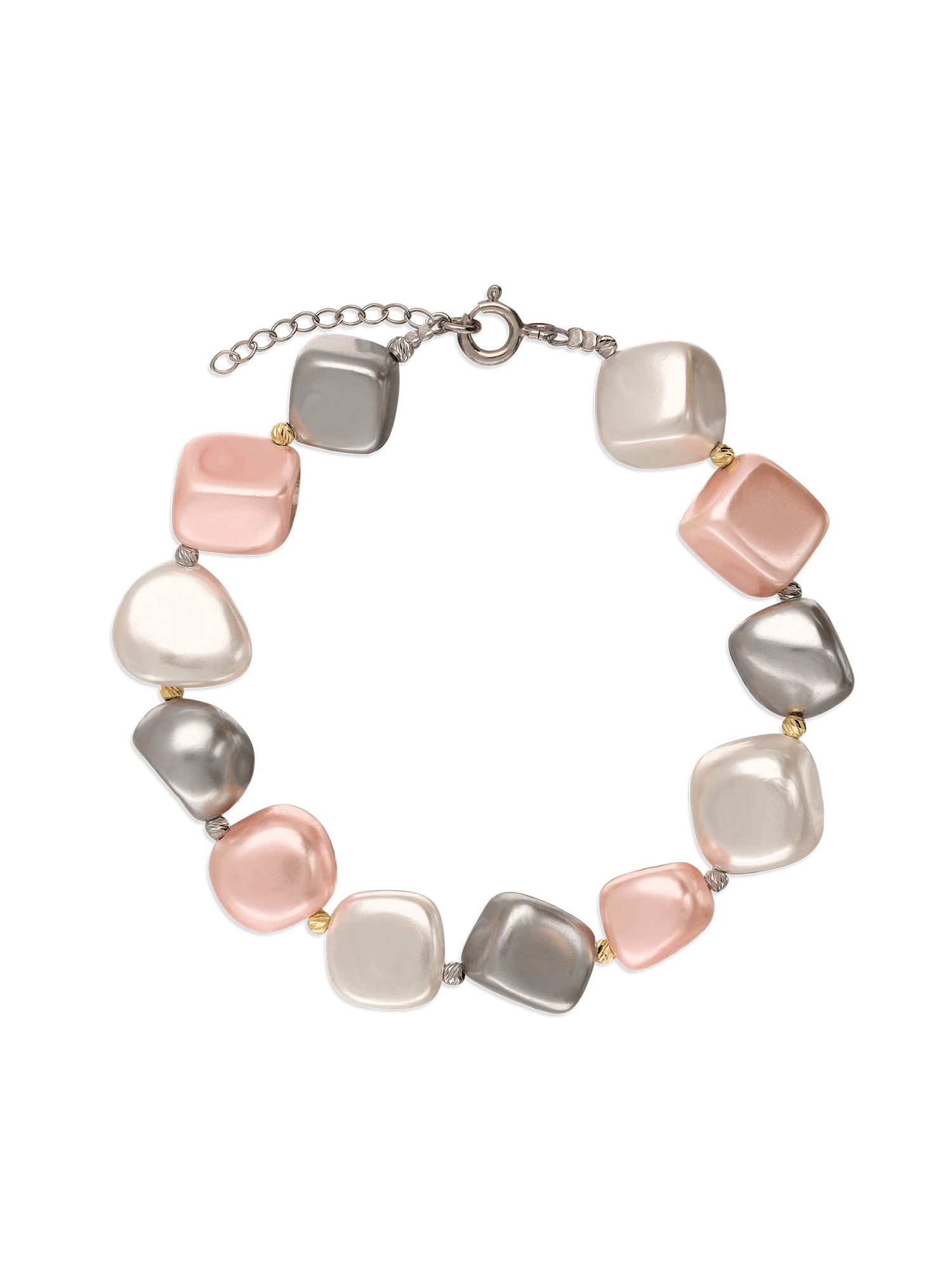 Pulsera de piedra, plata con baño de rodio y baño de oro, Madreperla artificial, Multicolor, Variedad de formas, Artificial, DOS TONOS, 23.20 g