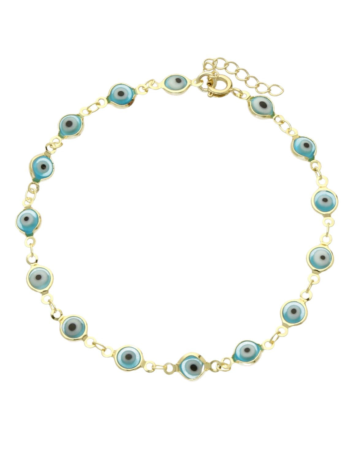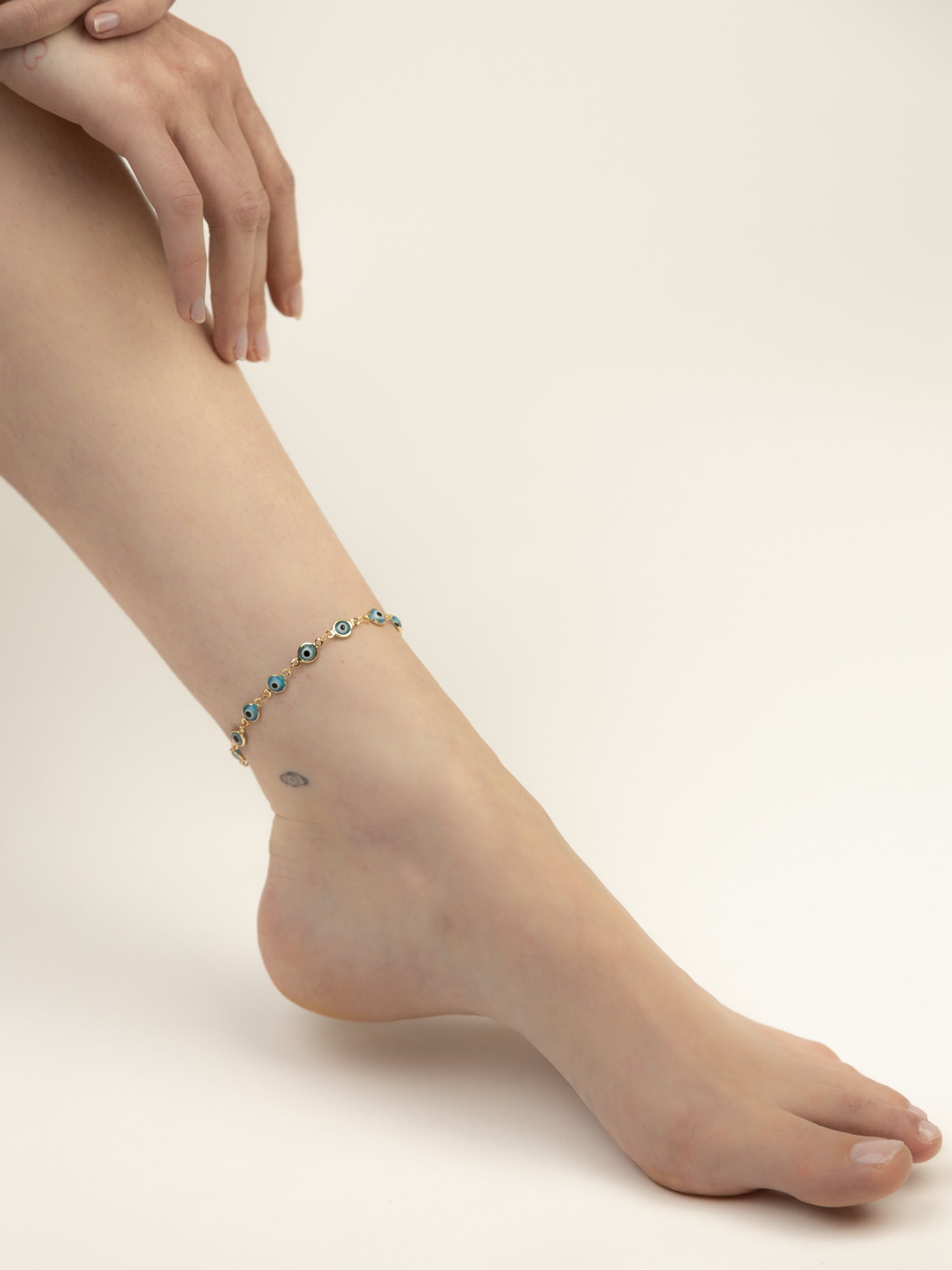 Ajorca para Tobillo, Bañado en oro, Vidrio de plomo, Esmalte, Multicolor, Ojo, Artificial, Color dorado, 3.51 g