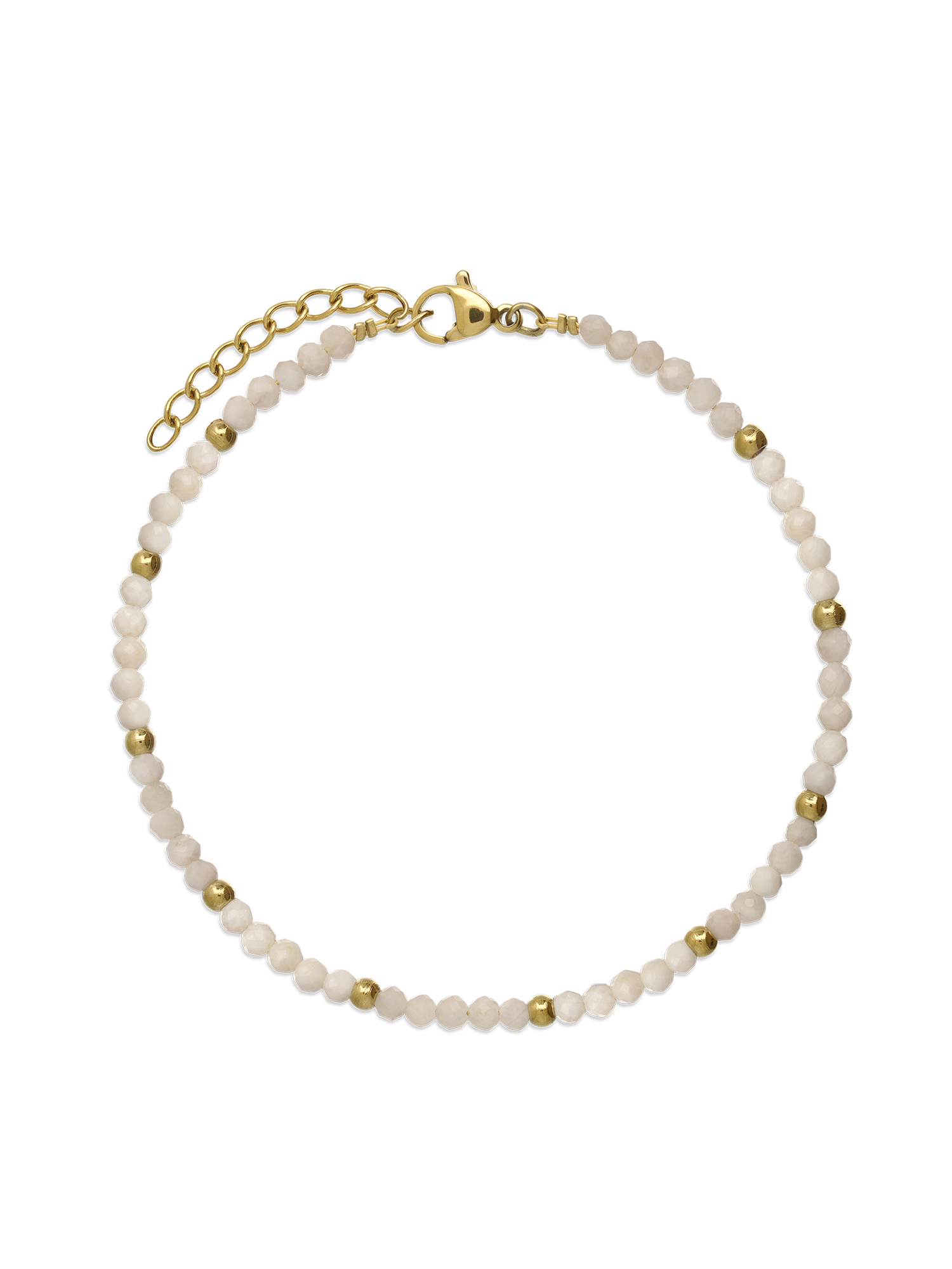 Ajorca para Tobillo, Acero inoxidable con baño de oro de aproximadamente 1 micra, Cuarzo artificial, Blanco, Círculo, Artificial, Color dorado, 3.25 g