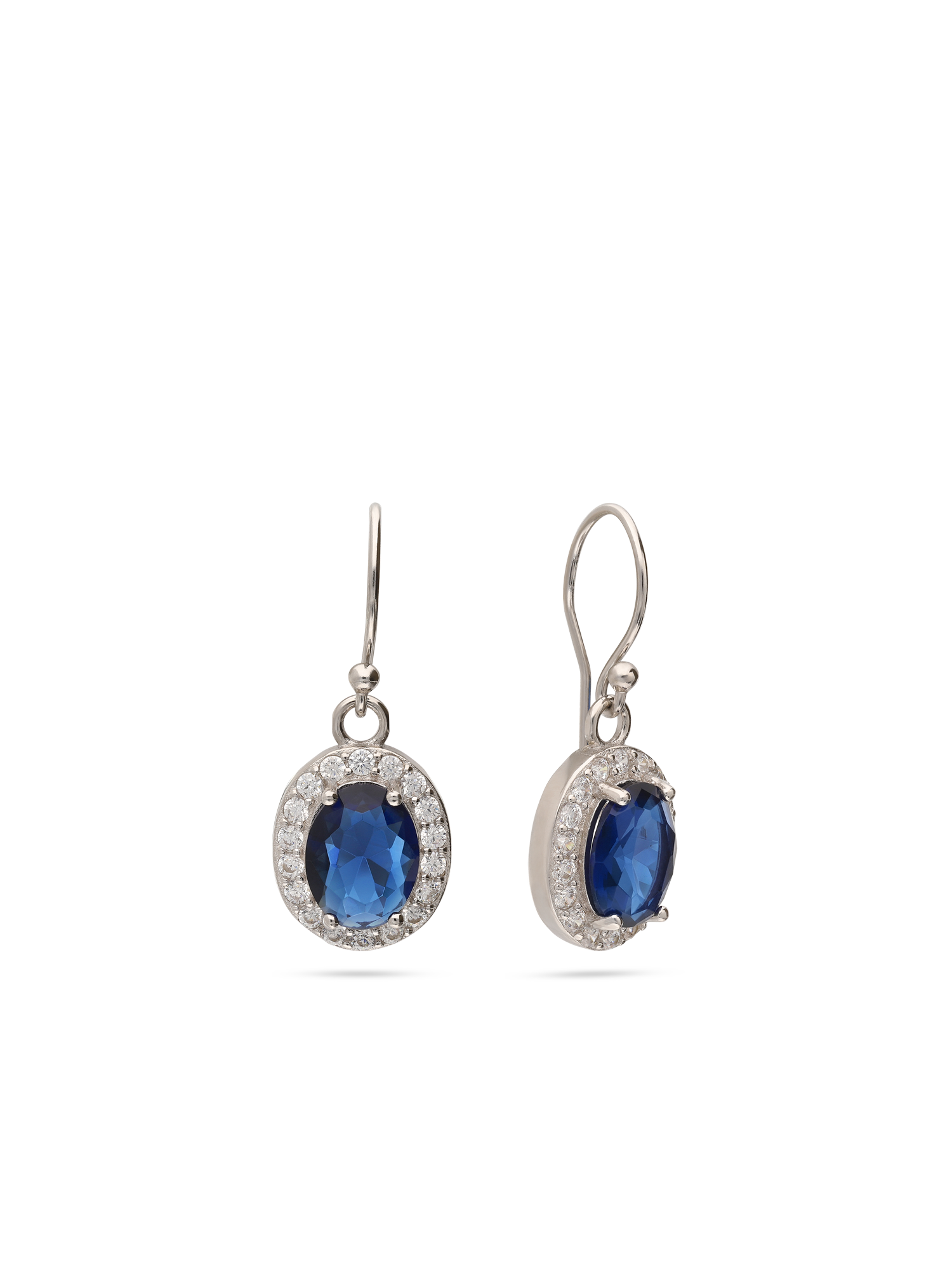 Gotas, Plata 925 bañada en rodio, Zirconia cúbica artificial, Azul, Claro, Círculo, Artificial, Color plateado, longitud del pendiente: 2.5 cm, ancho del pendiente: 1.2 cm, 3.50 g