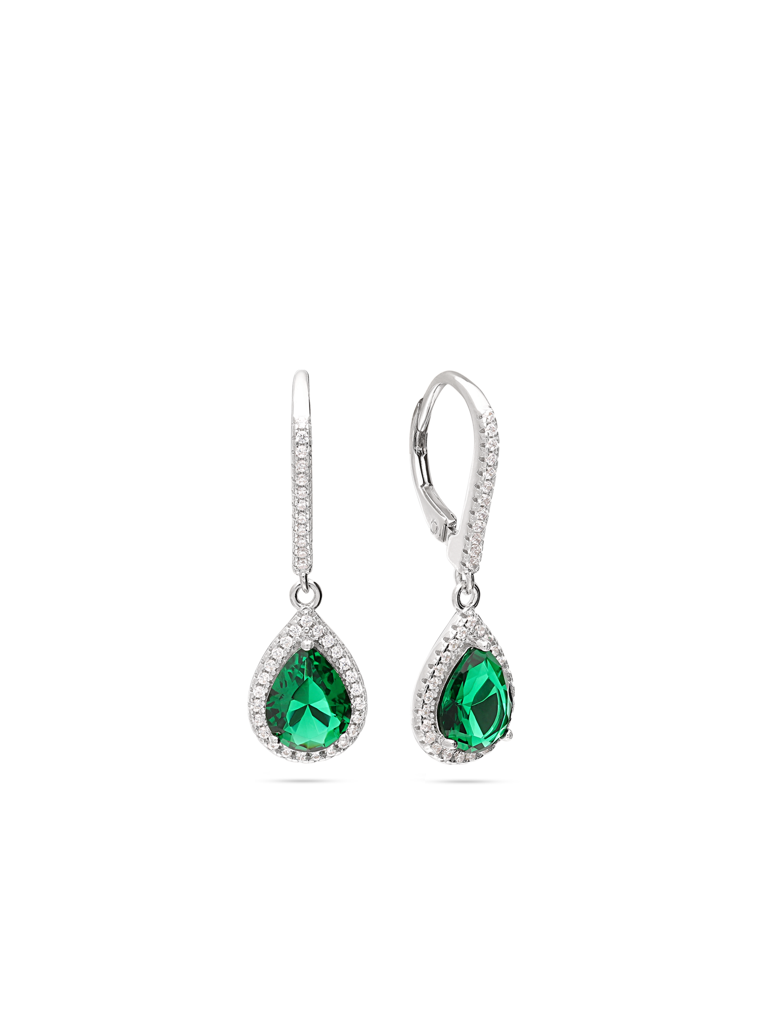 Gotas, Plata 925 bañada en rodio, Zirconia cúbica artificial, Verde, Claro, Lágrima, Artificial, Color plateado, longitud del pendiente: 3.0 cm, ancho del pendiente: 0.9 cm, 4.17 g