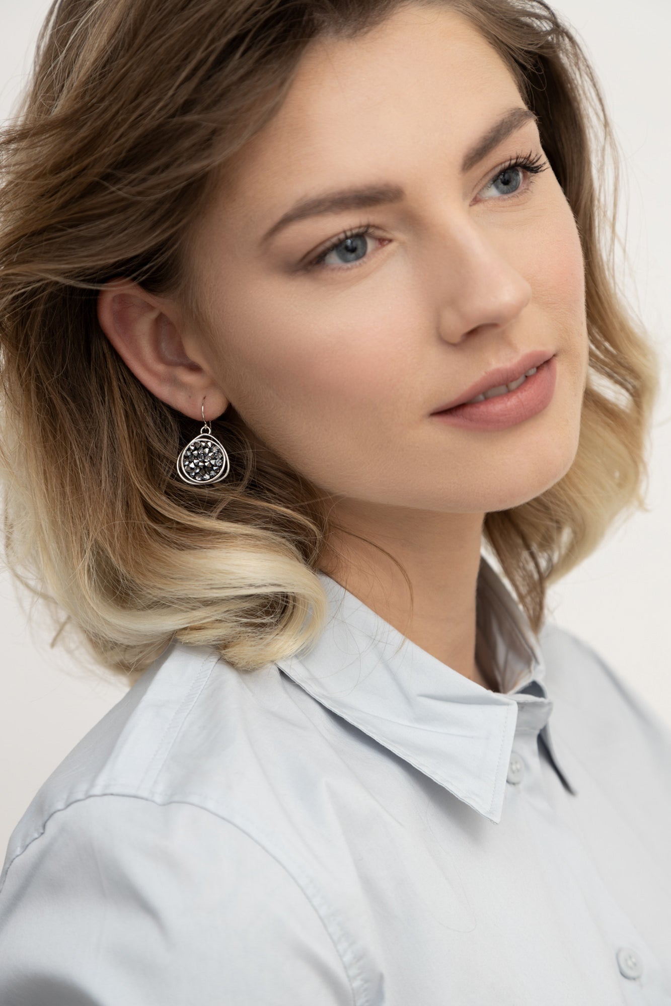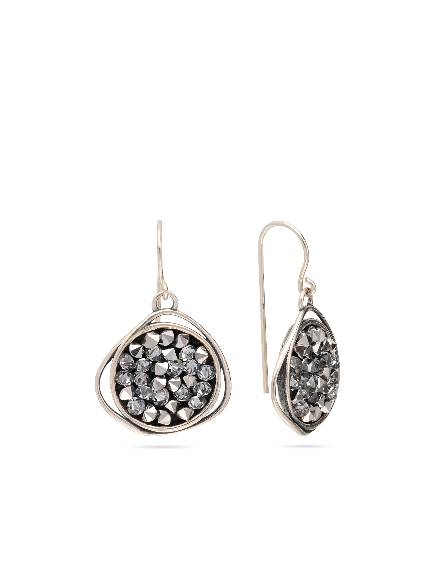Gotas, Plata de Ley 925, Cristal Swarovski artificial, Gris, Círculo, Artificial, Color plateado, longitud del pendiente: 2.8 cm, ancho del pendiente: 2.0 cm, 5.60 g