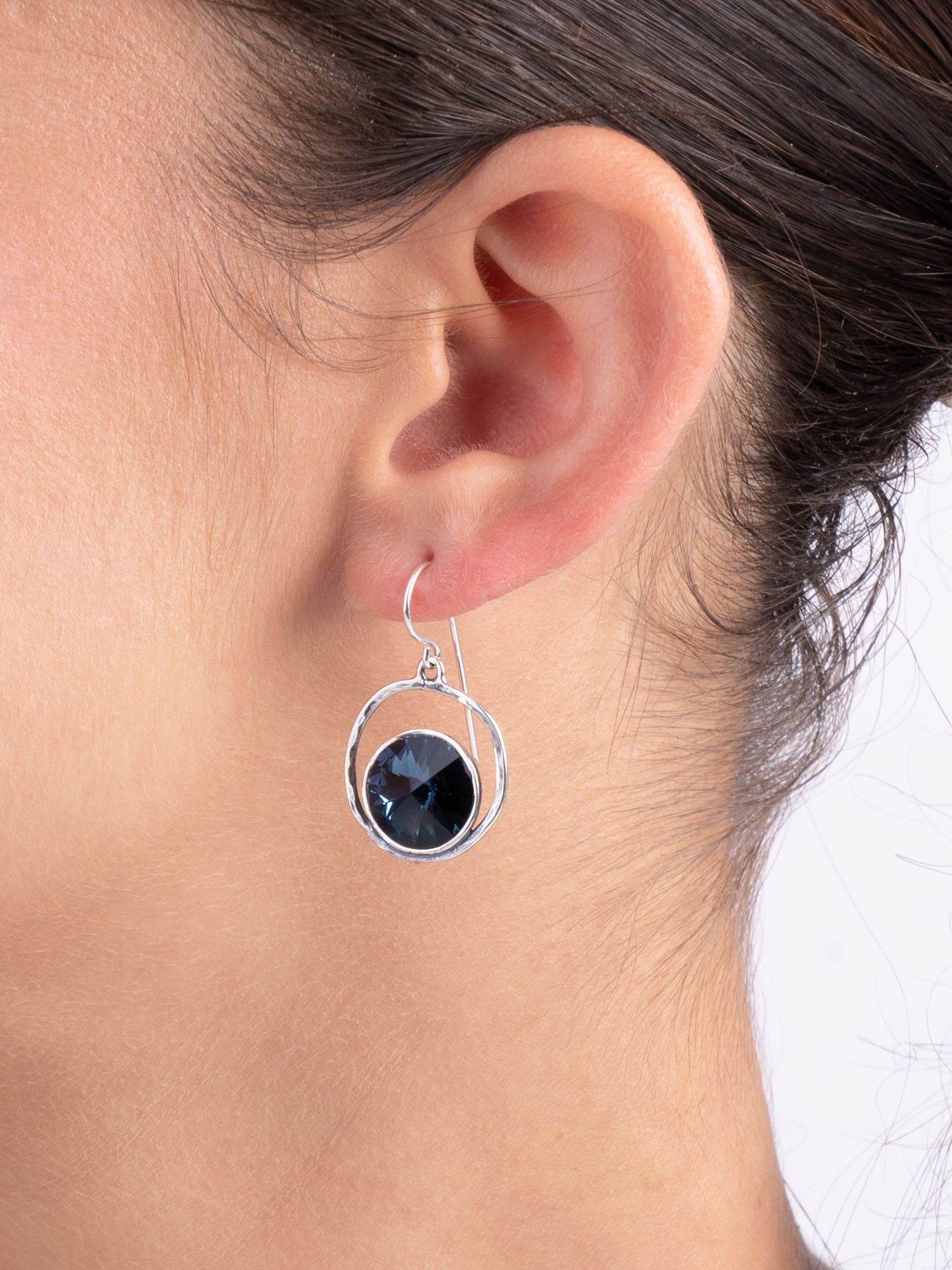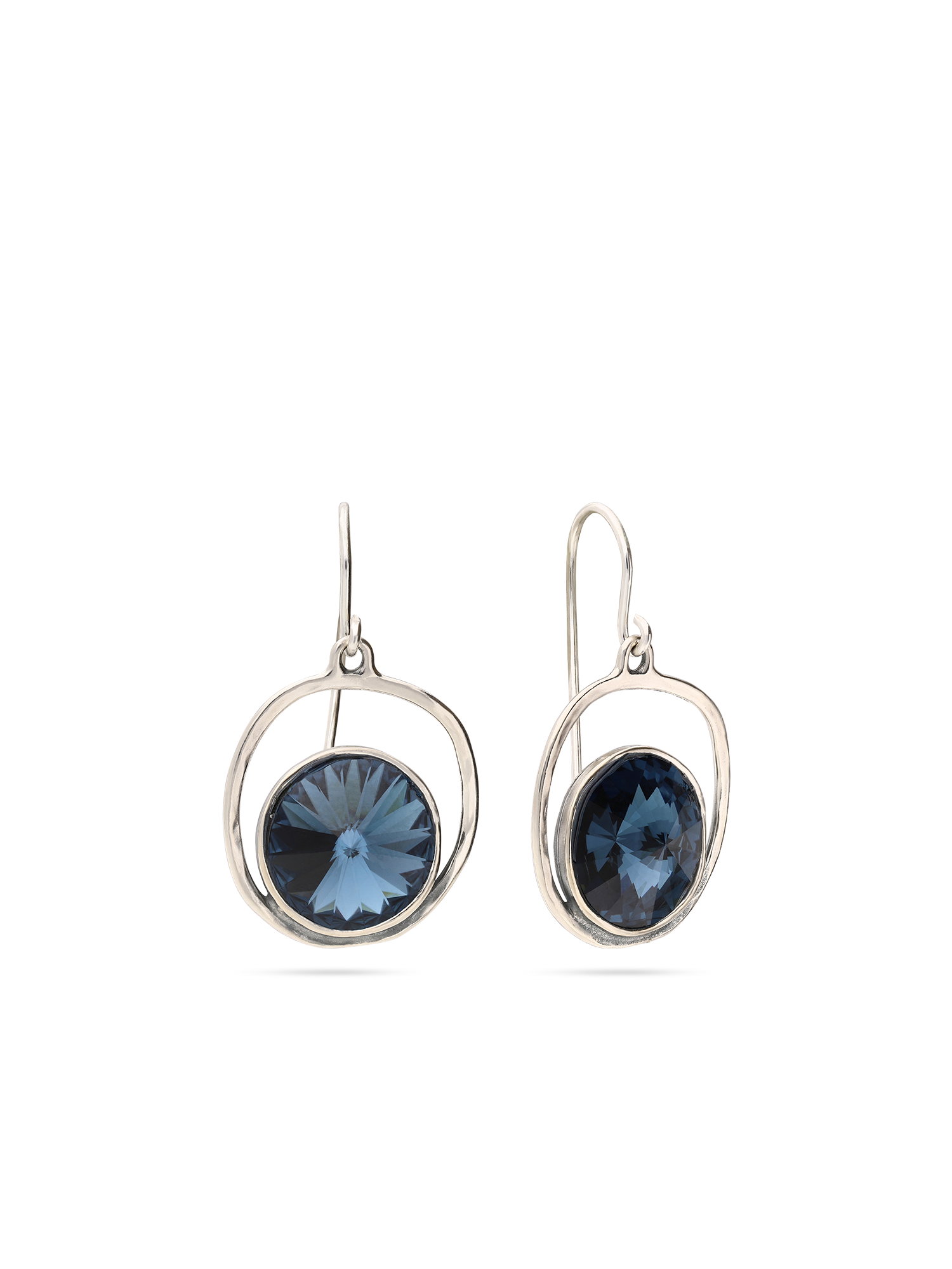 Gotas, Plata de Ley 925, Cristal Swarovski artificial, Azul, Círculo, Artificial, Color plateado, longitud del pendiente: 2.5 cm, ancho del pendiente: 2.0 cm, 4.90 g