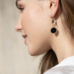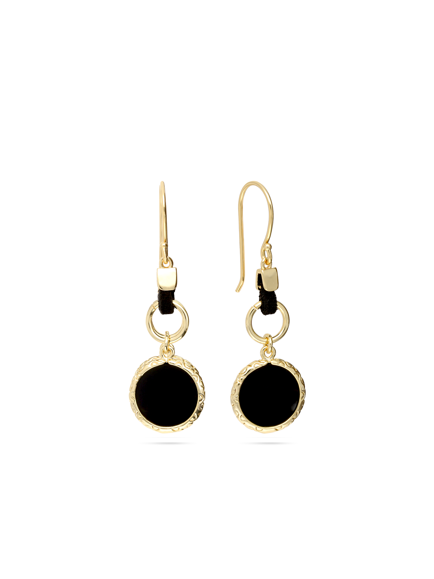 Gotas, Bañado en oro, Ágata artificial, Negro, Círculo, Artificial, Color dorado, longitud del pendiente: 4.0 cm, ancho del pendiente: 1.5 cm, 3.95 g