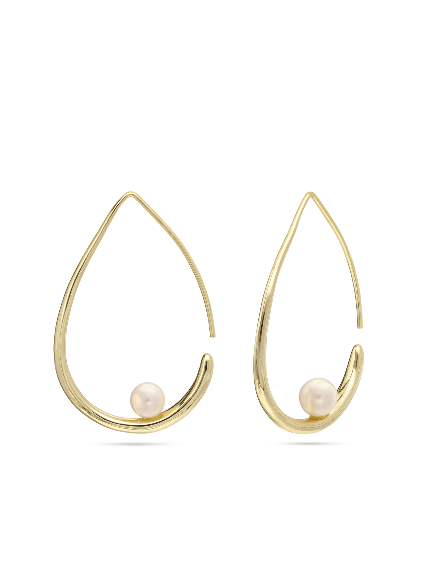 Gotas, Bañado en oro, Perla cultivada, Blanco, Lágrima, Círculo, Color dorado, longitud del pendiente: 3.7 cm, ancho del pendiente: 0.5 cm, 4.40 g