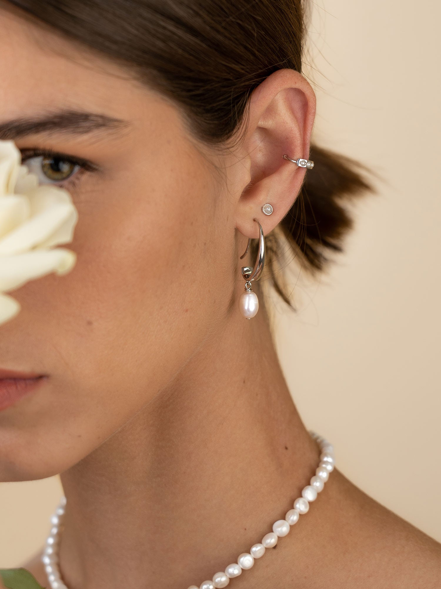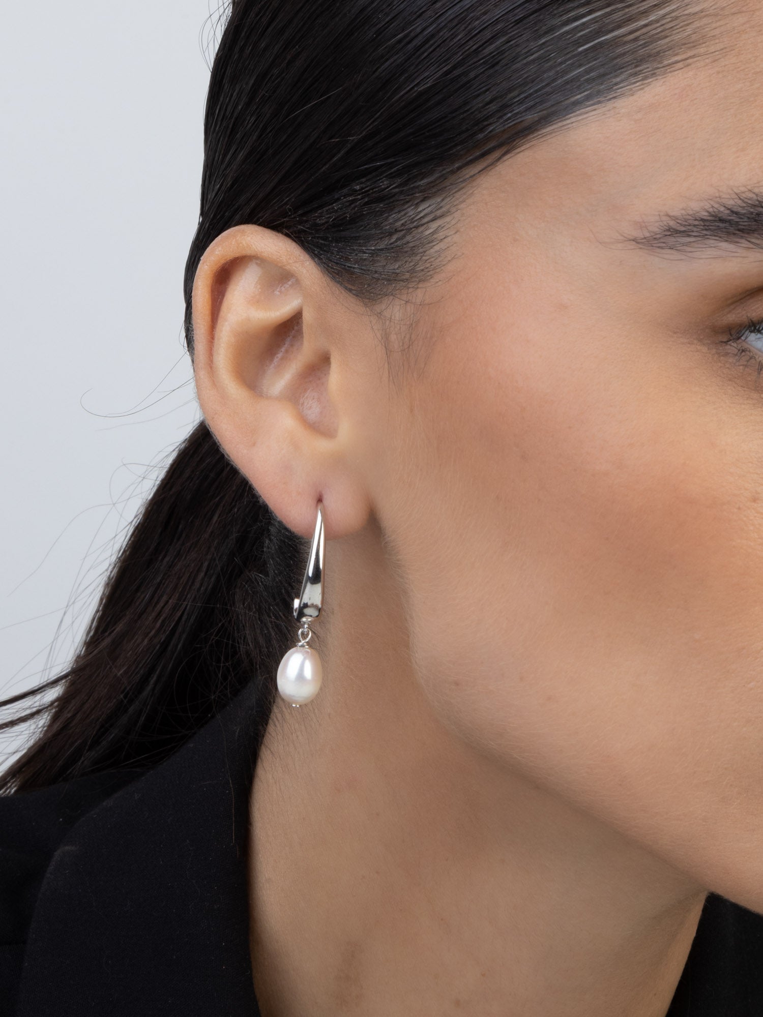 Gotas, Plata 925 bañada en rodio, Perla cultivada