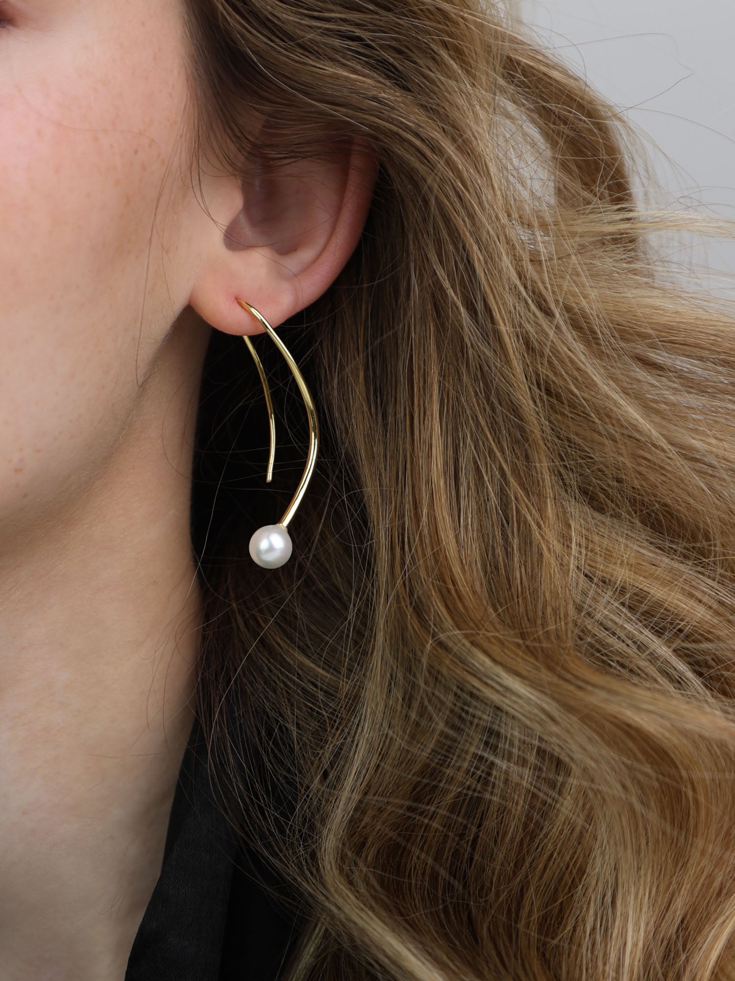 Gotas, Bañado en oro, Perla Swarovski artificial, Blanco, Círculo, Color dorado, longitud del pendiente: 5.2 cm, ancho del pendiente: 1.5 cm, 4.72 g