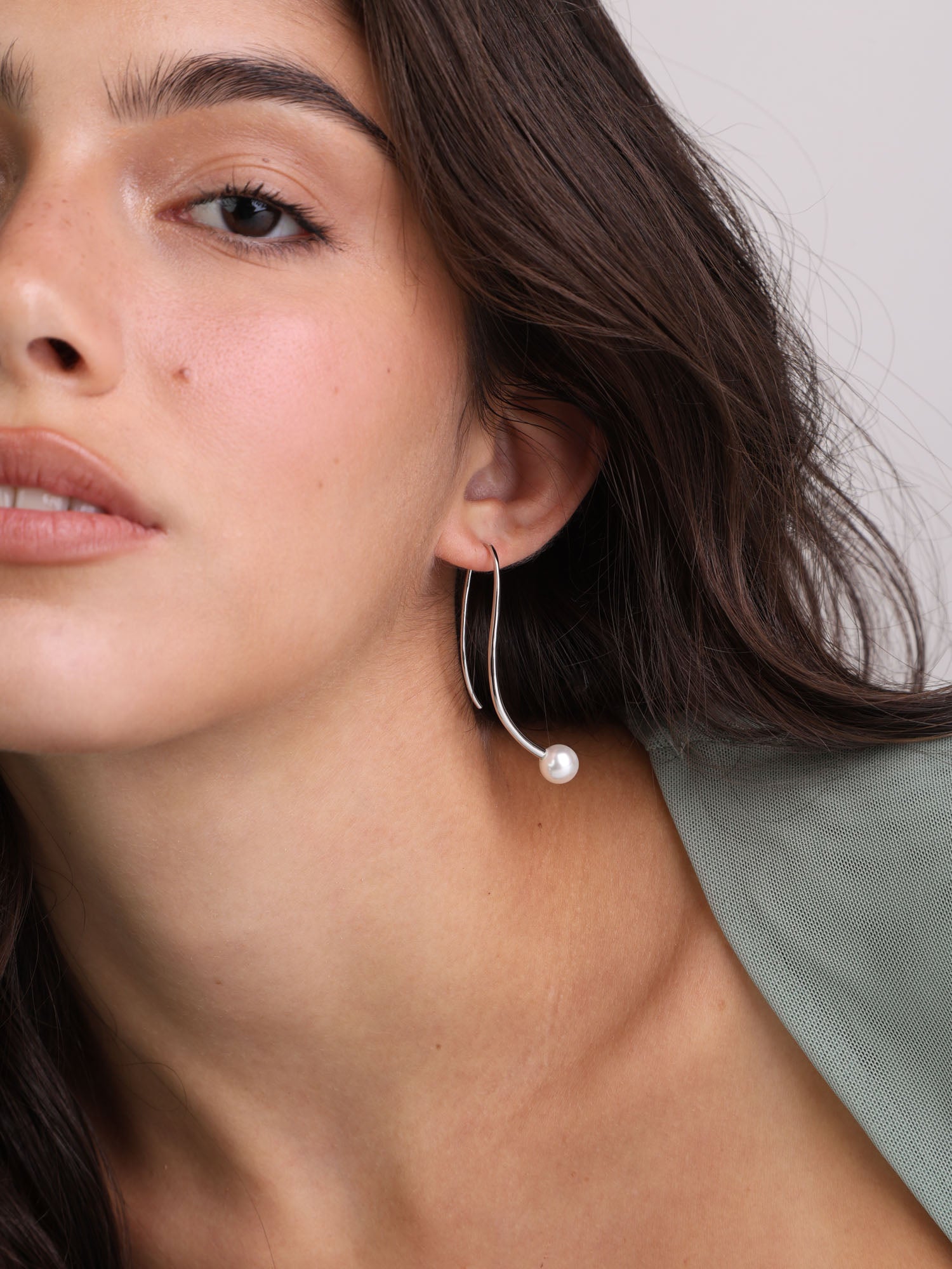 Gotas, Plata 925 bañada en rodio, Perla Swarovski artificial, Blanco, Forma no específica, Color plateado, longitud del pendiente: 5.5 cm, ancho del pendiente: 0.8 cm, 5.15 g