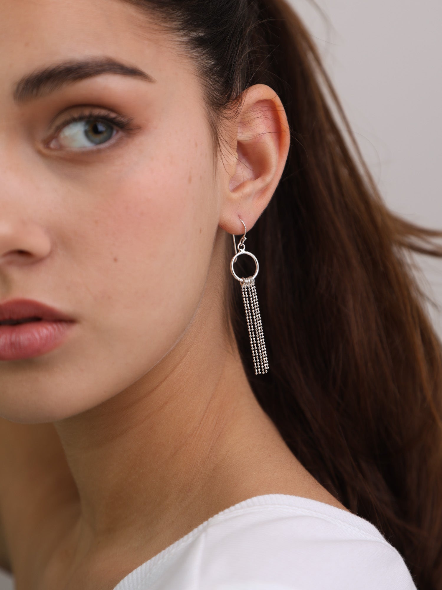 Gotas, Plata de Ley 925, Sin piedra, Sin color, Círculo, Color plateado, longitud del pendiente: 6.0 cm, ancho del pendiente: 1.2 cm, 3.02 g