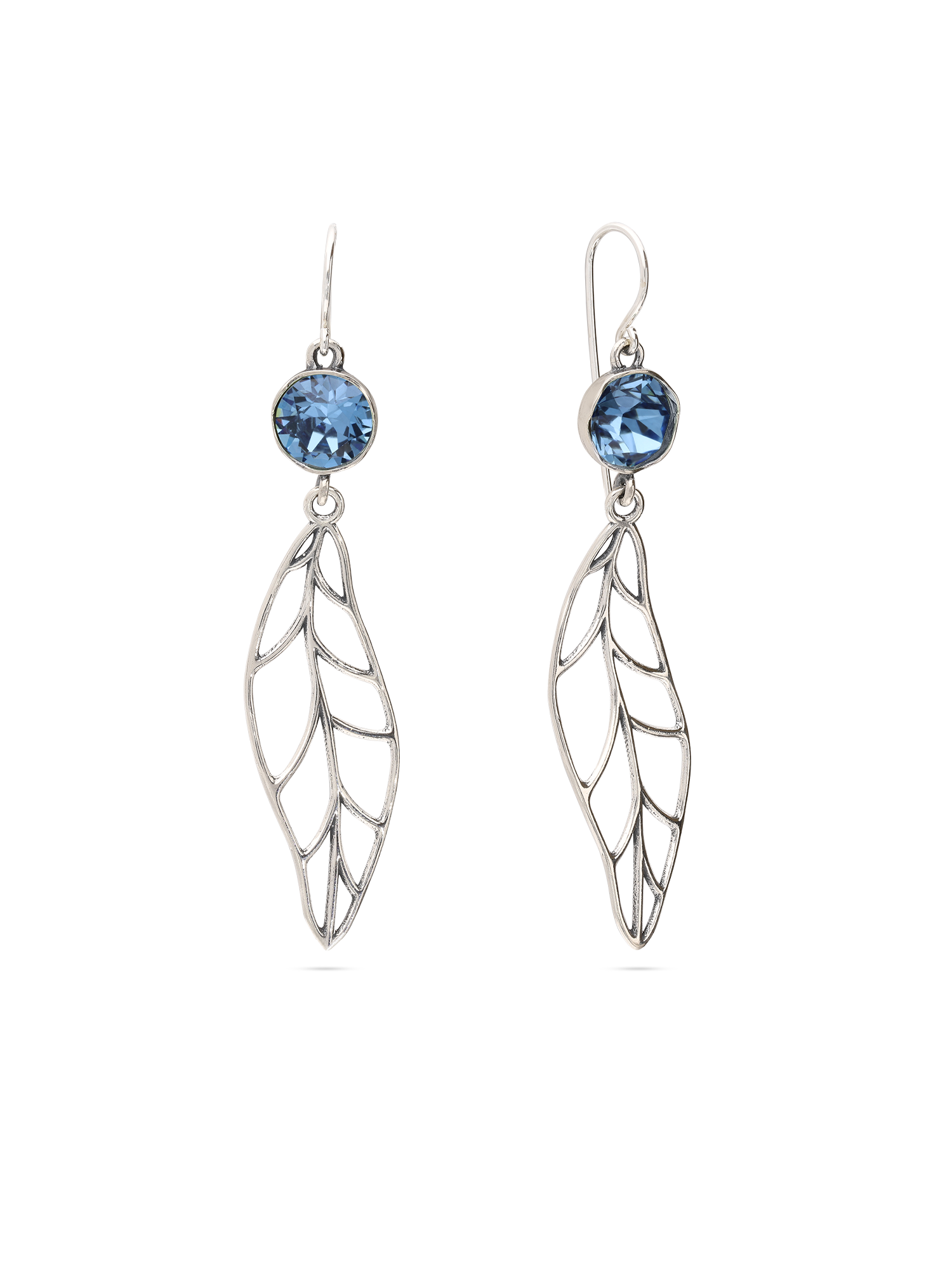 Gotas, Plata de Ley 925, Cristal Swarovski artificial, Celeste, Hoja, Círculo, Artificial, Color plateado, longitud del pendiente: 6.5 cm, ancho del pendiente: 1.4 cm, 4.50 g