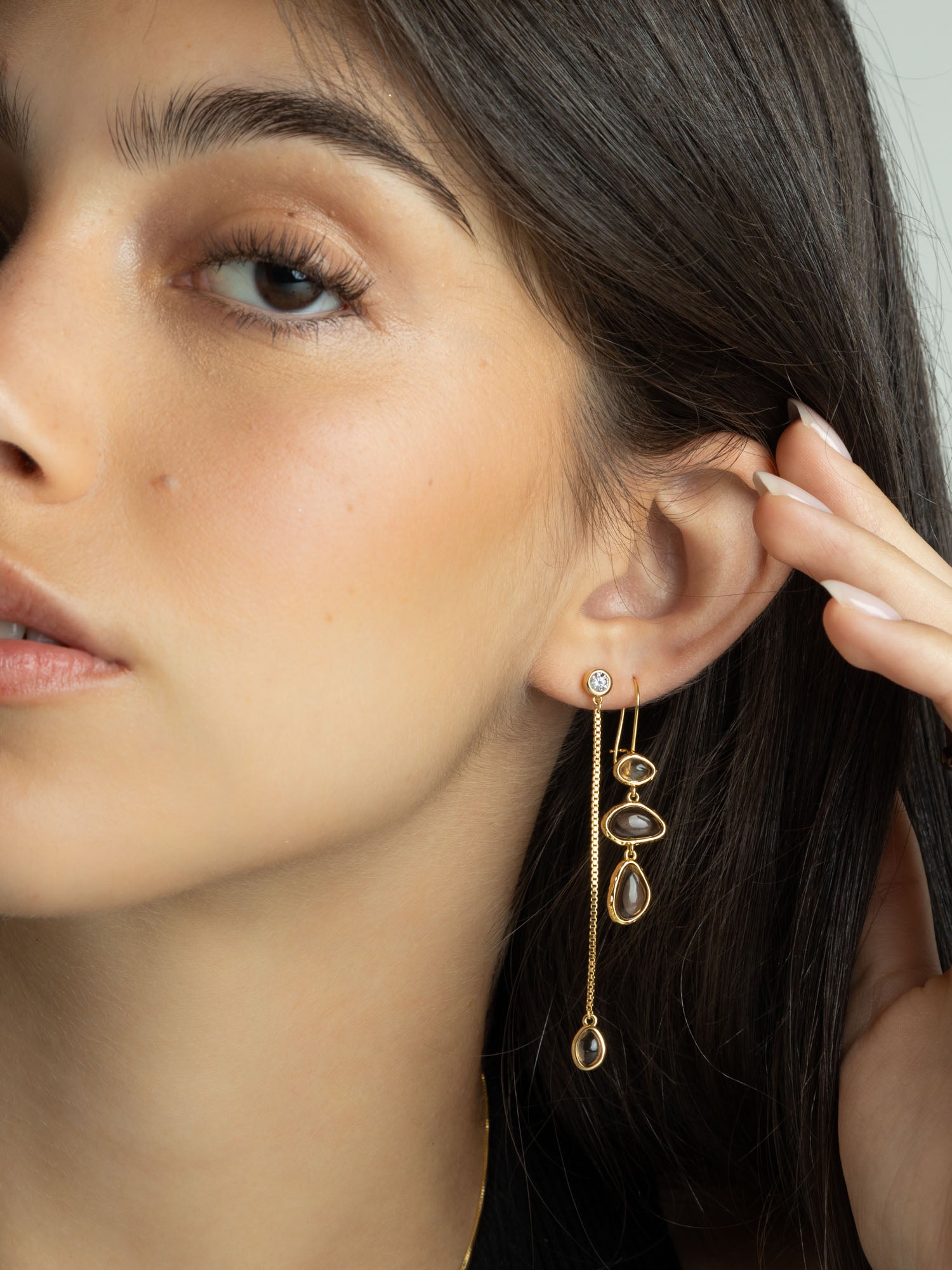 Gotas, Bañado en oro, Vidrio de plomo, Café, Guijarros, Artificial, Color dorado, longitud del pendiente: 3.8 cm, ancho del pendiente: 1.1 cm, 3.62 g
