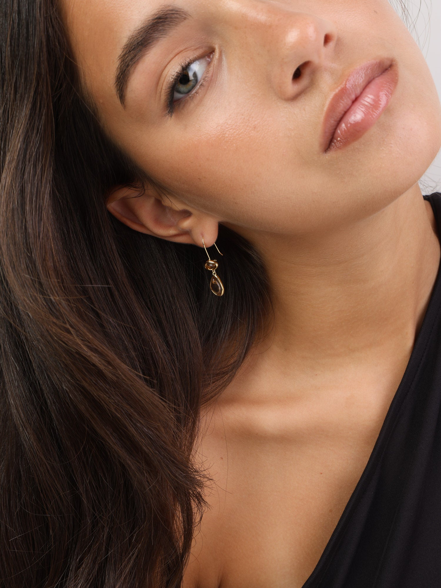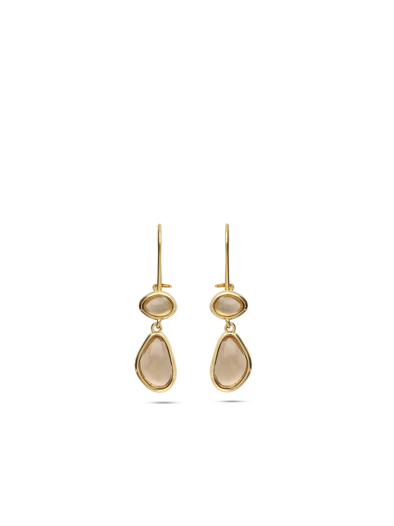 Gotas, Bañado en oro, Opalita artificial, Café, Guijarros, Artificial, Color dorado, longitud del pendiente: 3.0 cm, ancho del pendiente: 0.5 cm, 2.31 g