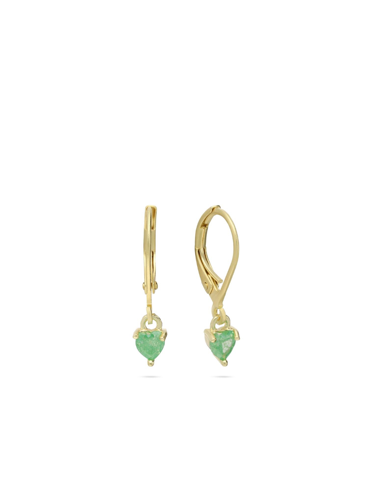 Gotas, Bañado en oro, Vidrio de plomo, Verde, Corazón, Artificial, Color dorado, longitud del pendiente: 2.1 cm, ancho del pendiente: 1.0 cm, 1.10 g