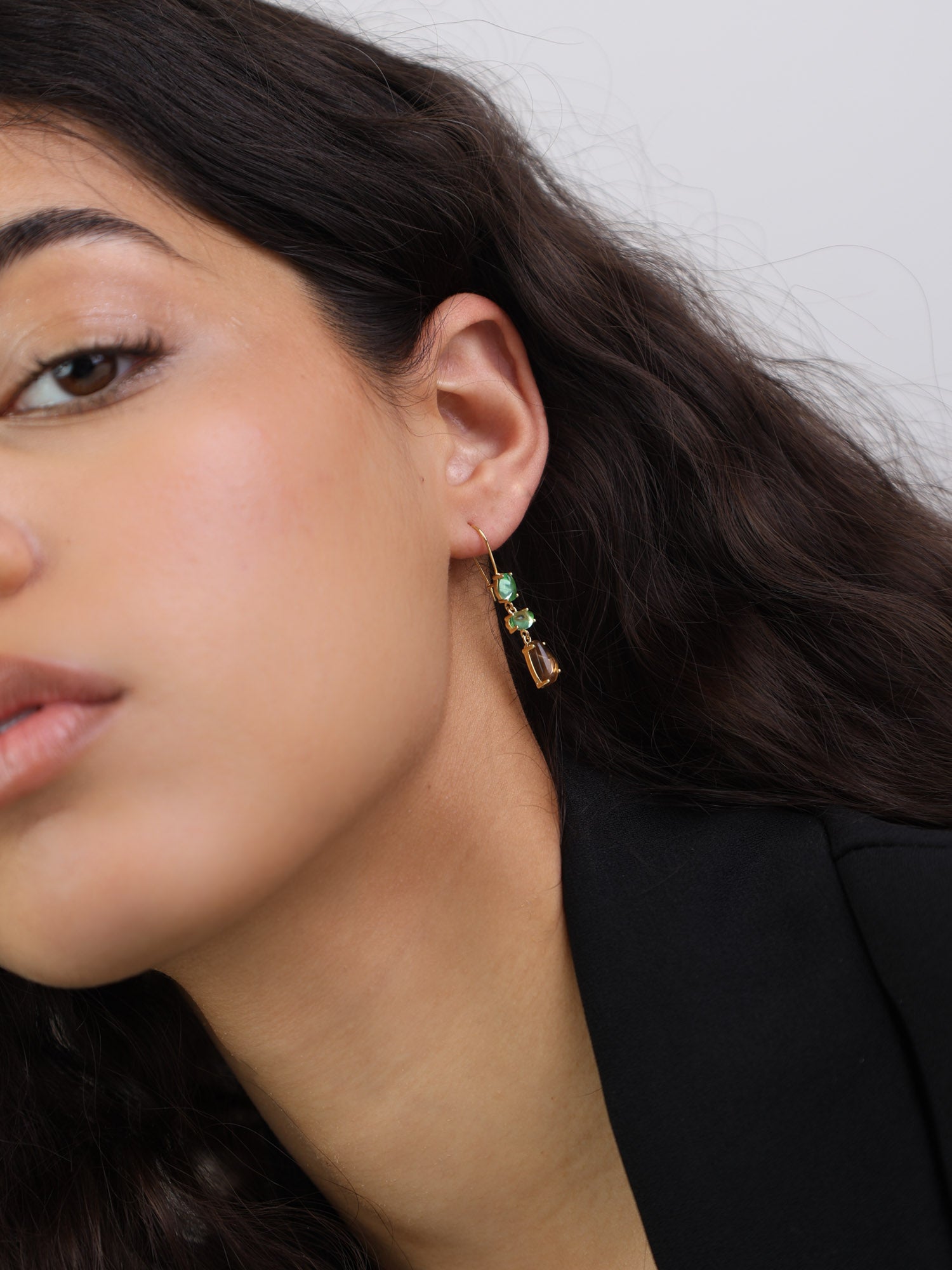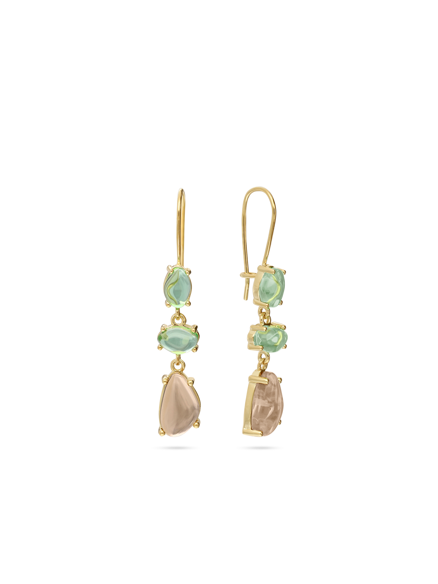 Gotas, Bañado en oro, Vidrio de plomo, Verde, Café, Guijarros, Artificial, Color dorado, longitud del pendiente: 3.8 cm, ancho del pendiente: 0.6 cm, 2.56 g