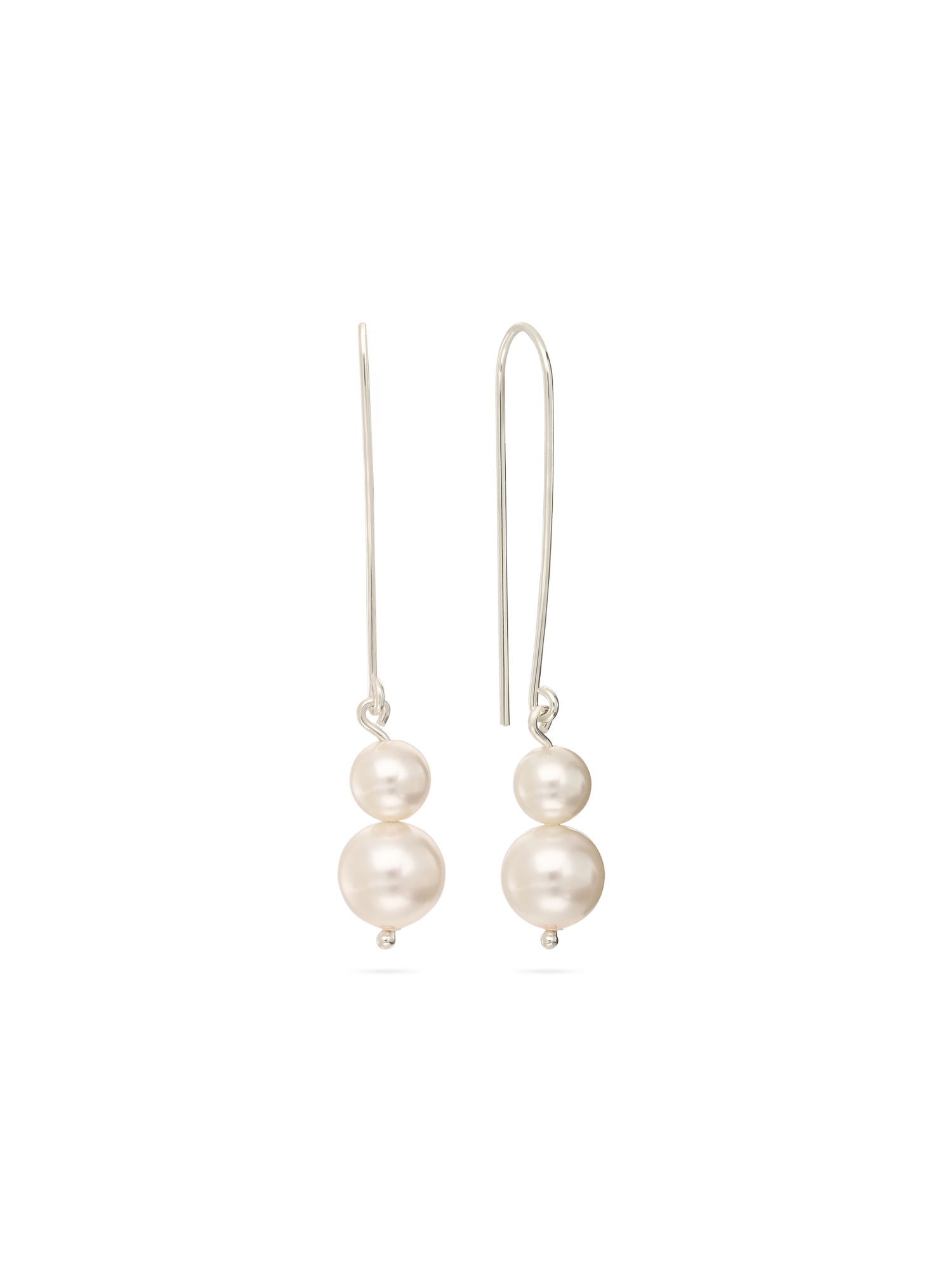 Gotas, Plata de Ley 925, Perla Swarovski artificial, Blanco, Círculo, Artificial, Color plateado, longitud del pendiente: 5.0 cm, ancho del pendiente: 1.0 cm, 5.30 g