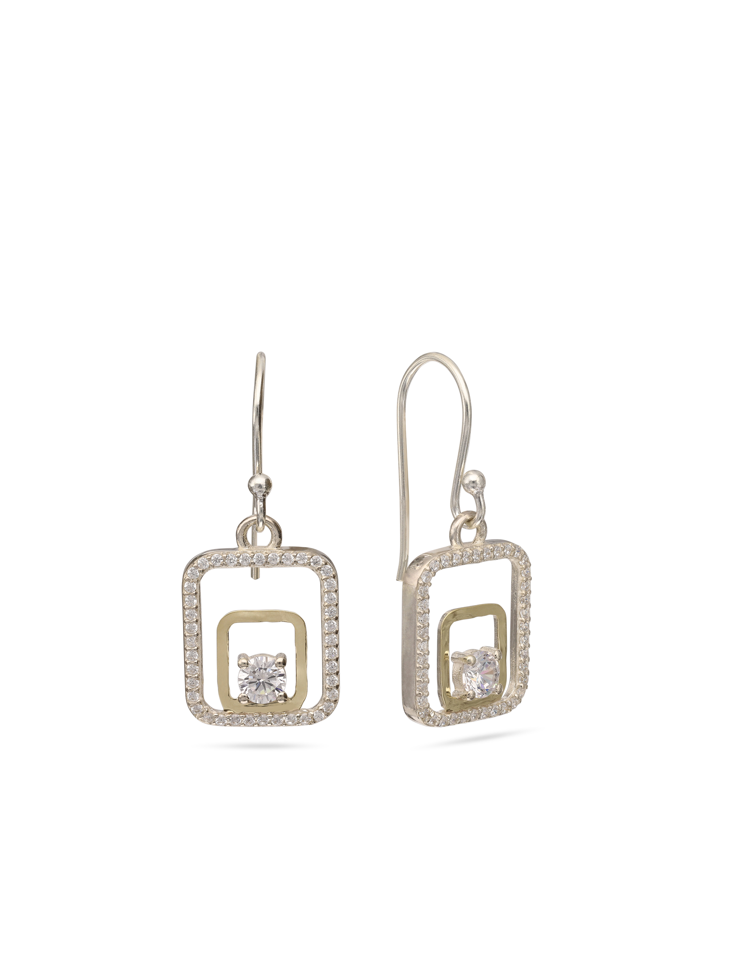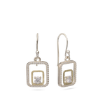 Gotas, Plata 925 con oro 9k, Zirconia cúbica artificial, Claro, Cuadrado, Círculo, Artificial, DOS TONOS, longitud del pendiente: 3.1 cm, ancho del pendiente: 1.3 cm, 2.60 g