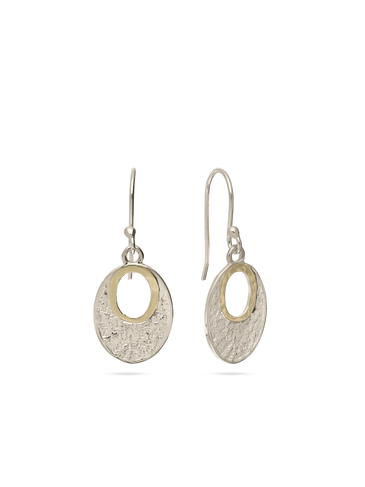 Gotas, Plata 925 con oro 9k, Sin piedra, Sin color, Círculo, DOS TONOS, longitud del pendiente: 3.4 cm, ancho del pendiente: 1.4 cm, 3.50 g