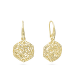 Gotas, Bañado en oro, Sin piedra, Sin color, Hexágono, Color dorado, longitud del pendiente: 17.8 mm, ancho del pendiente: 16.9 mm, 3.72 g