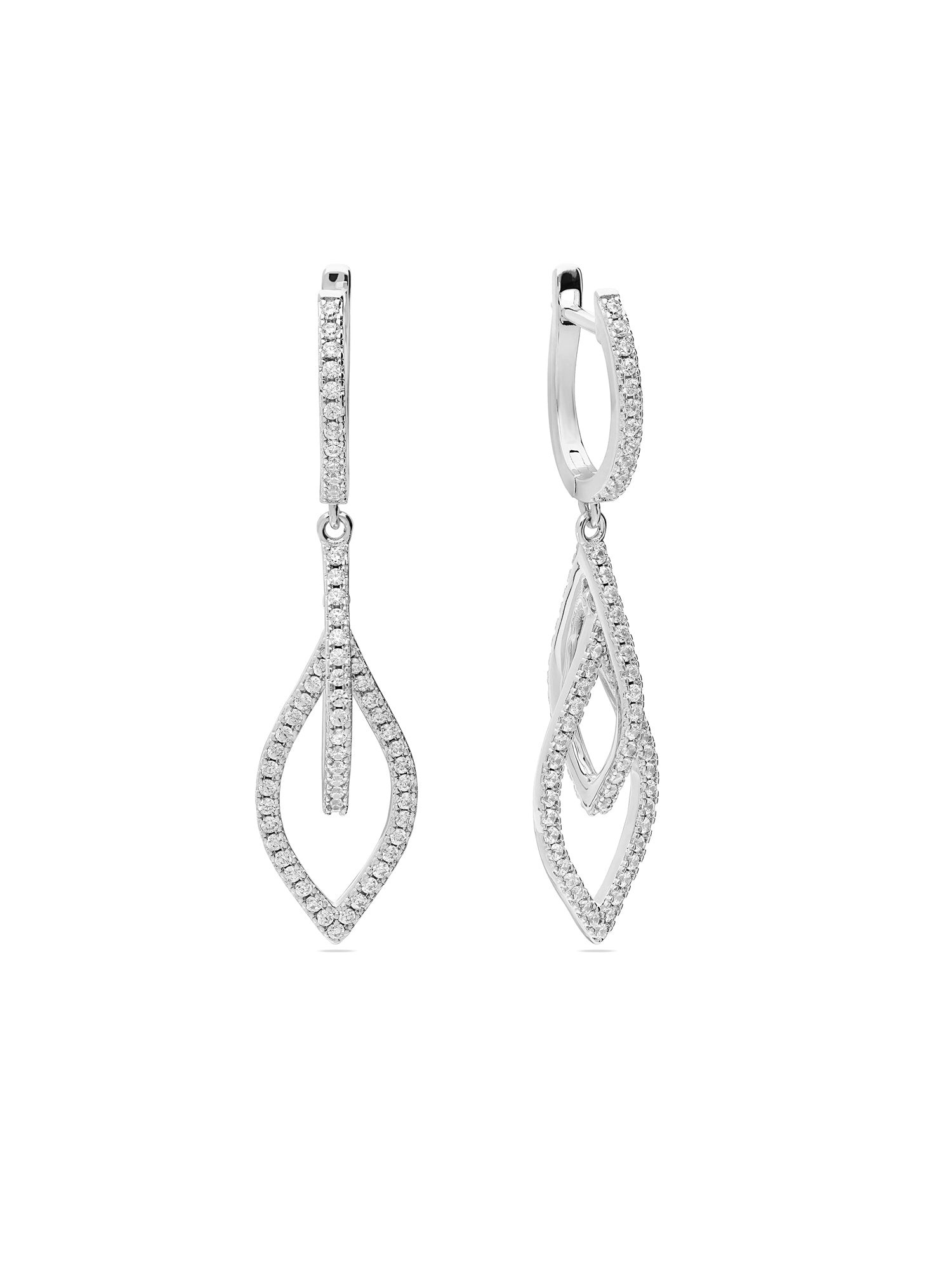 Gotas, Plata 925 bañada en rodio, Zirconia cúbica artificial, Claro, Óvalo, Artificial, Color plateado, longitud del pendiente: 4.5 cm, ancho del pendiente: 1.2 cm, 5.02 g