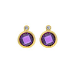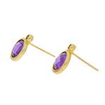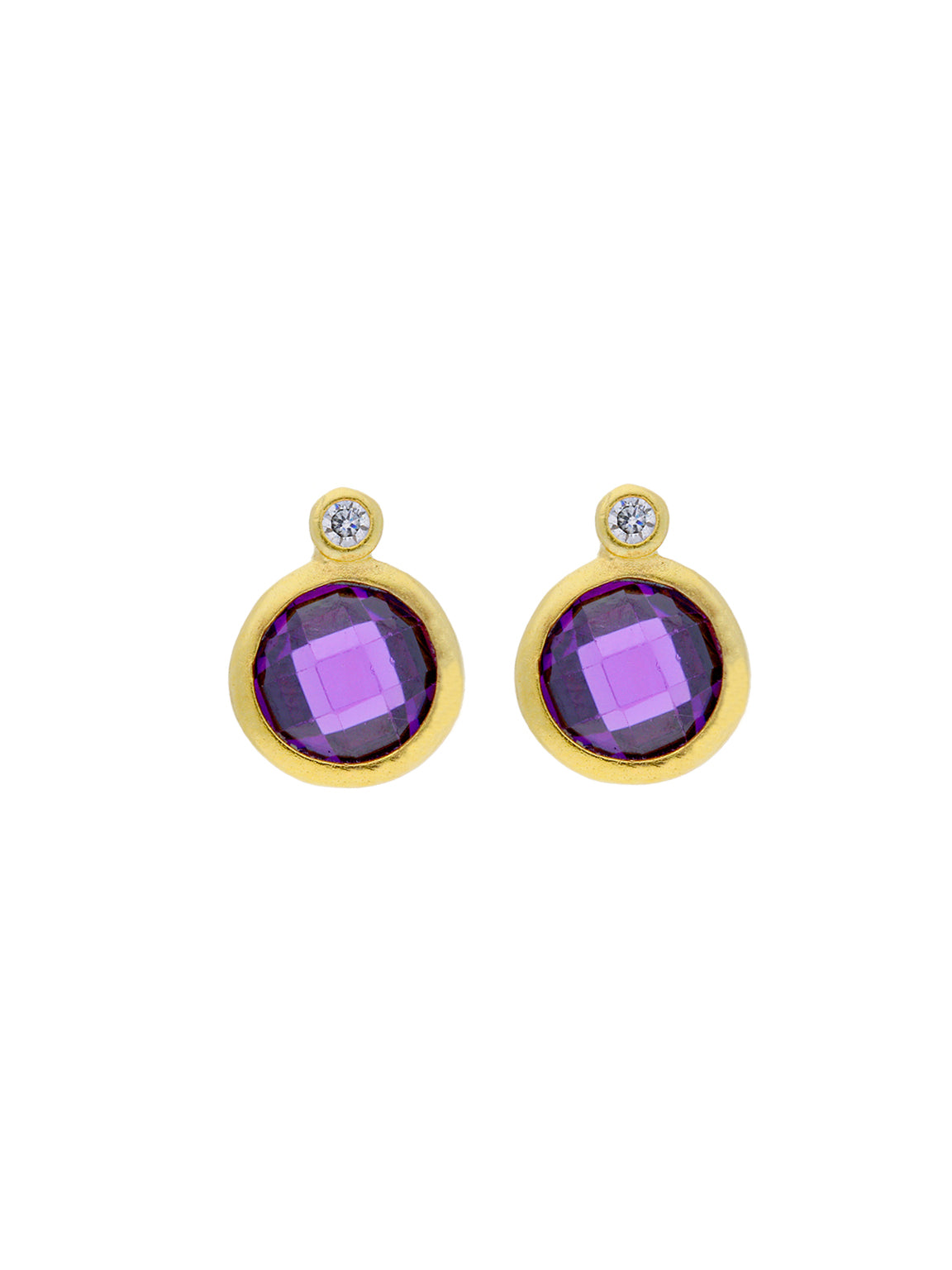 Tuerca, Bañado en oro, Zirconia cúbica artificial, Amatista artificial, Violeta, Claro, Círculo, Artificial, Color dorado, longitud del pendiente: 1.0 cm, ancho del pendiente: 0.5 cm, 1.87 g