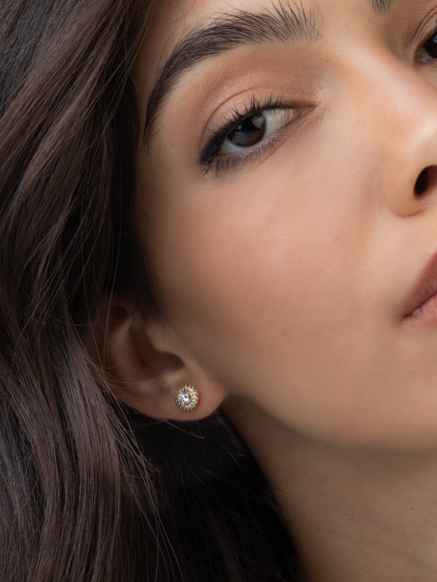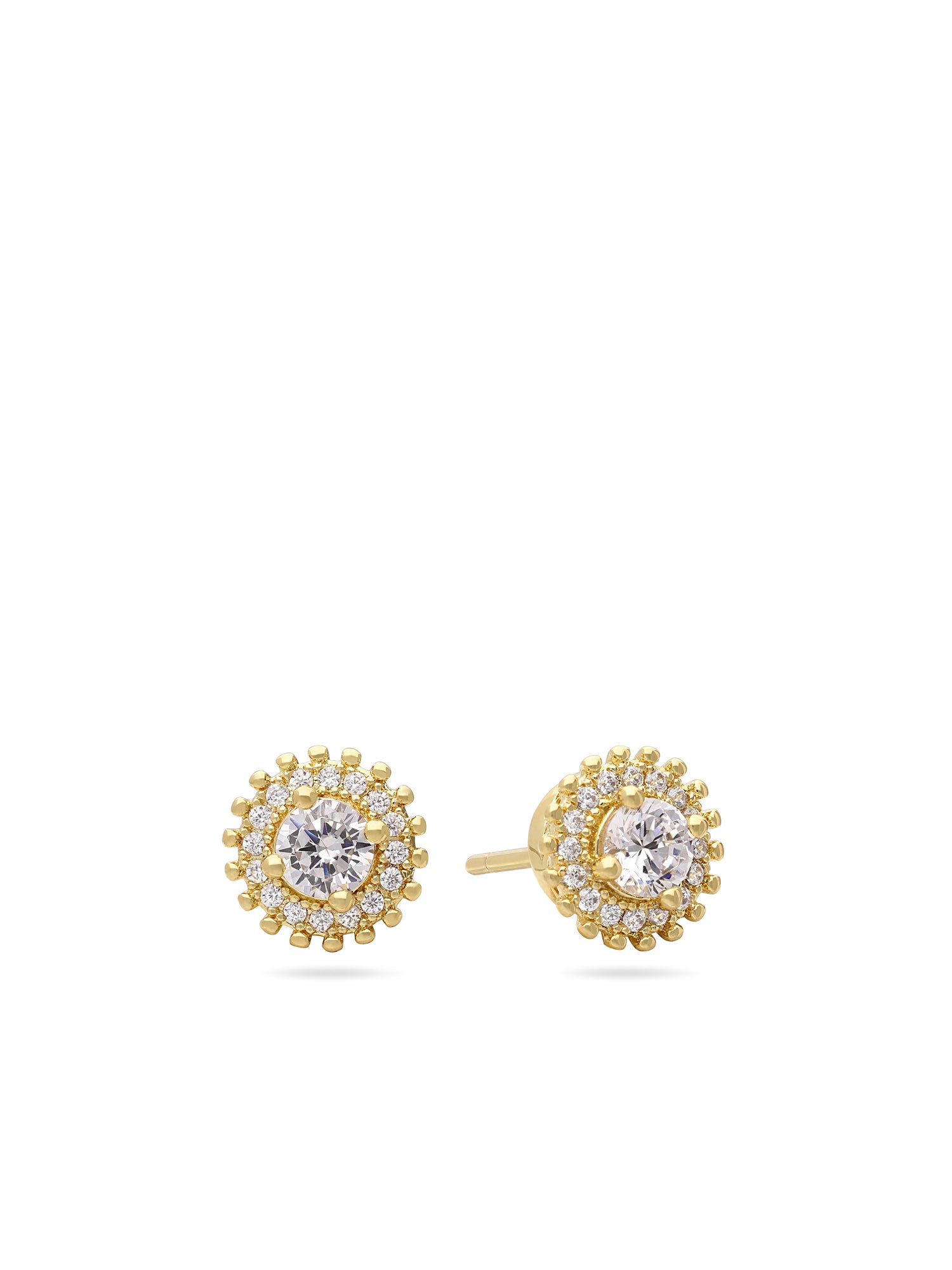 Tuerca, Bañado en oro, Zirconia cúbica artificial, Claro, Círculo, Artificial, Color dorado, longitud del pendiente: 0.7 cm, ancho del pendiente: 0.7 cm, 1.50 g