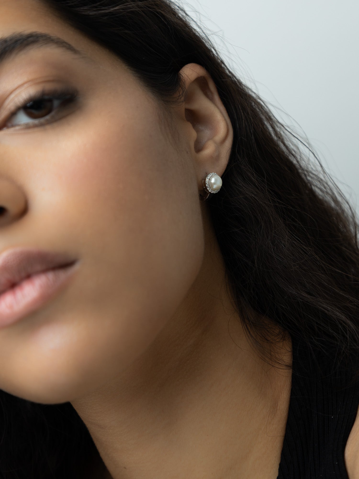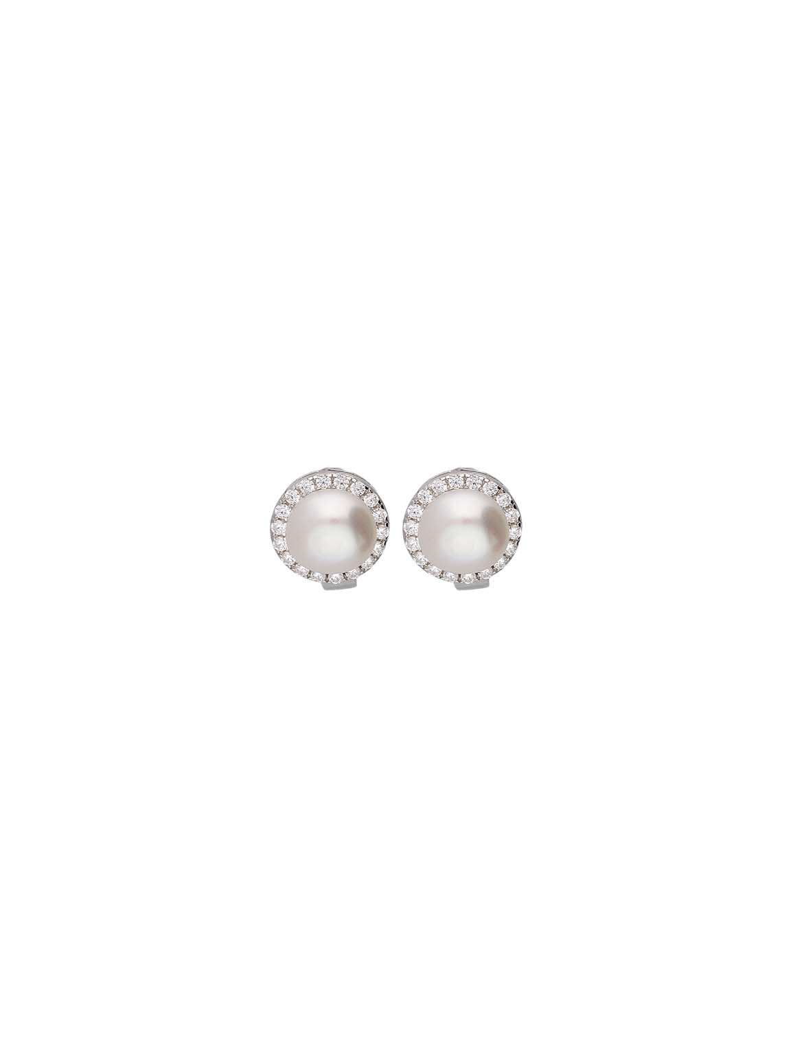 Tuerca, Plata 925 bañada en rodio, Zirconia cúbica artificial, Perla cultivada