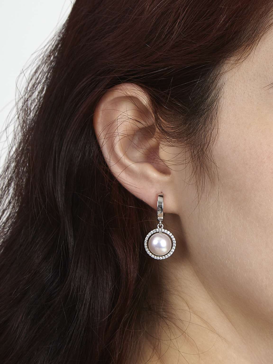 Gotas, Plata 925 bañada en rodio, Zirconia cúbica artificial, Perla cultivada, Blanco, Claro, Círculo, Artificial, Color plateado, ancho del pendiente: 3.0 cm, 6.37 g
