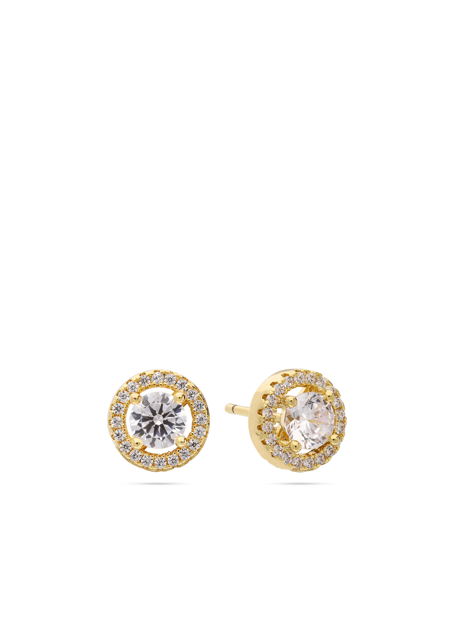 Tuerca, Bañado en oro, Zirconia cúbica artificial, Claro, Círculo, Artificial, Color dorado, longitud del pendiente: 0.7 cm, ancho del pendiente: 0.7 cm, 1.90 g