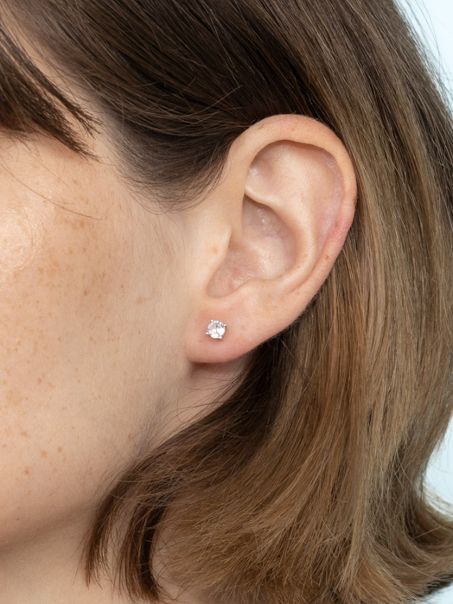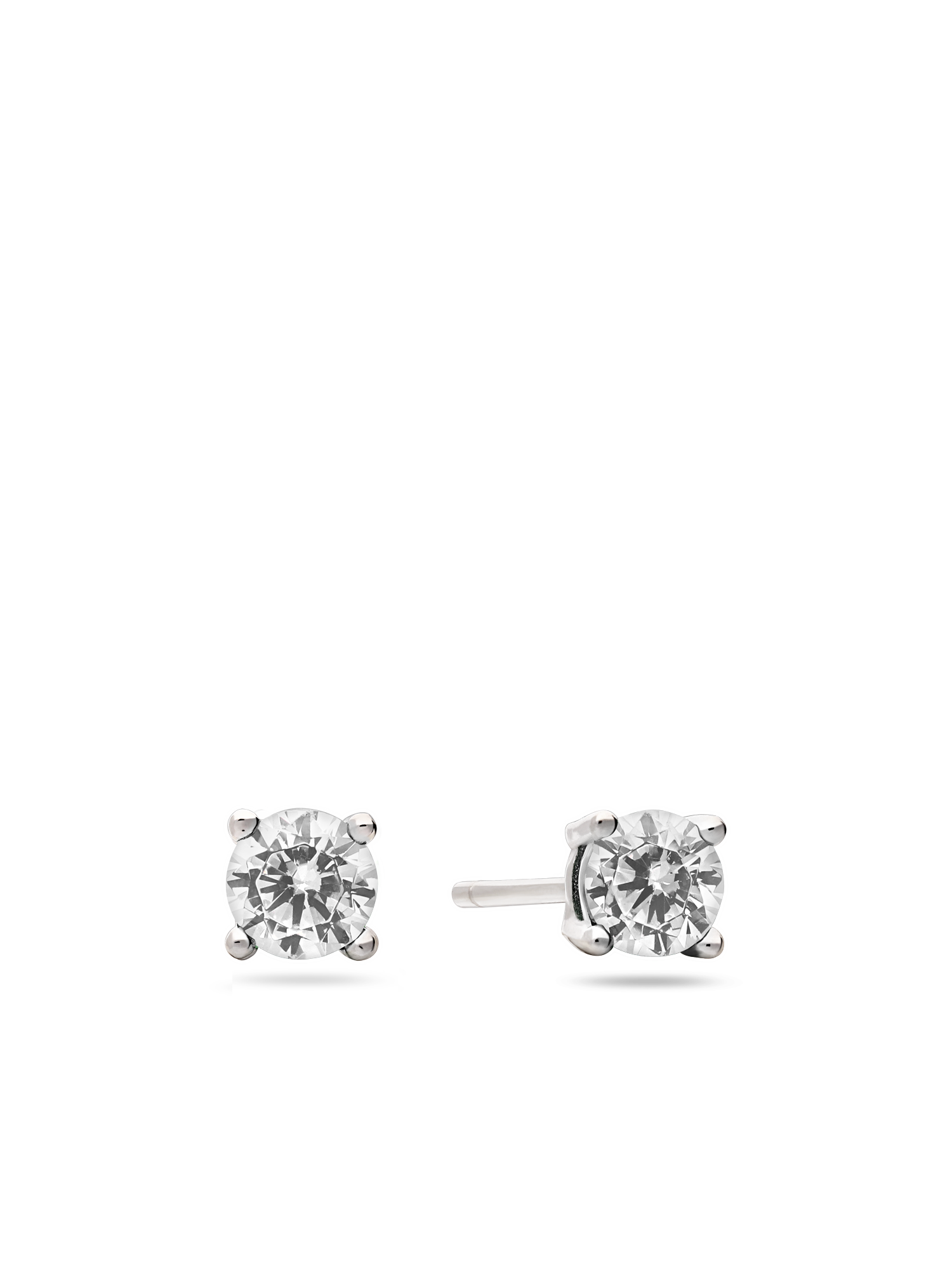 Tuerca, Plata 925 bañada en rodio, Zirconia cúbica artificial, Claro, Círculo, Artificial, Color plateado, longitud del pendiente: 4.0 mm, 0.60 g