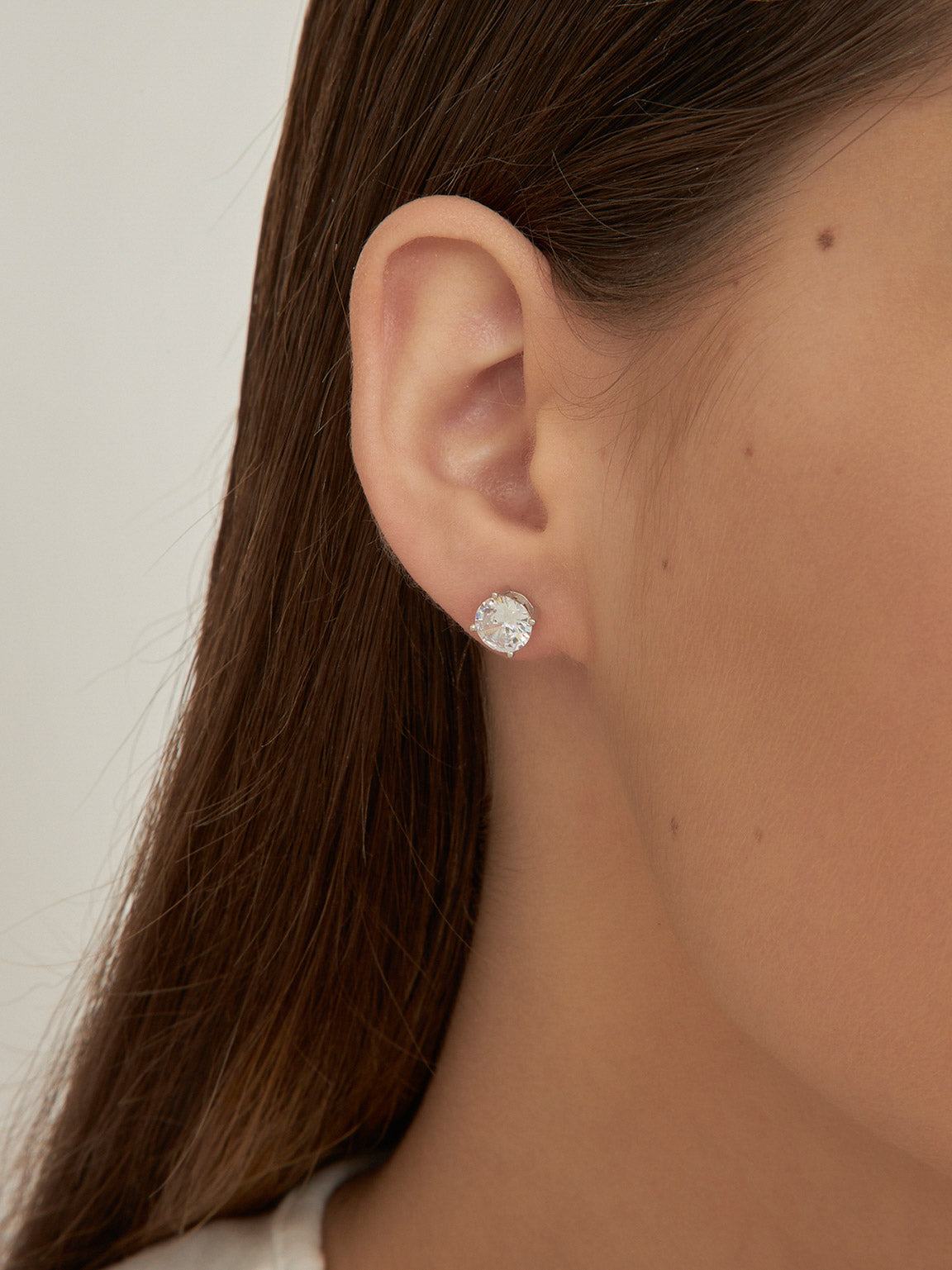 Tuerca, Plata de Ley 925, Zirconia cúbica artificial, Claro, Círculo, Artificial, Color plateado, longitud del pendiente: 7.0 mm, 2.00 g