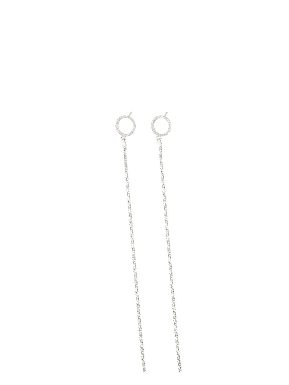 Gotas, Plata 925 bañada en rodio, Zirconia cúbica artificial, Claro, Círculo, Artificial, Color plateado, longitud del pendiente: 14.5 cm, ancho del pendiente: 1.0 cm, 3.26 g