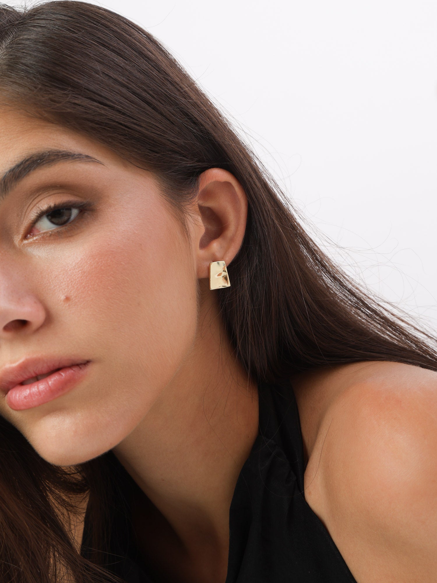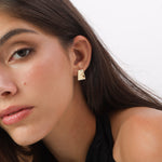 Tuerca, Bañado en oro, Sin piedra, Sin color, Cuadrado, Color dorado, longitud del pendiente: 1.4 cm, ancho del pendiente: 1.7 cm, 2.23 g