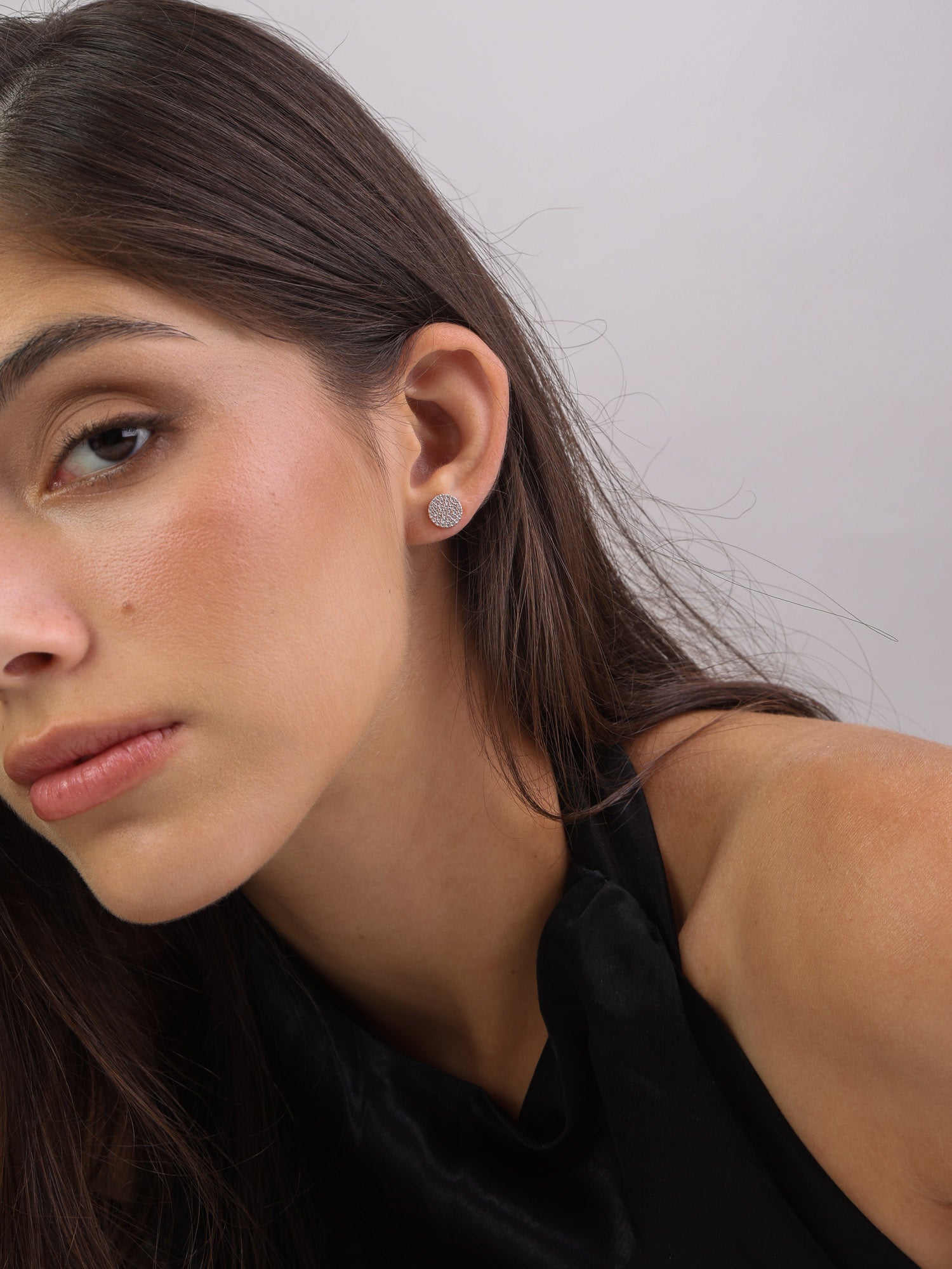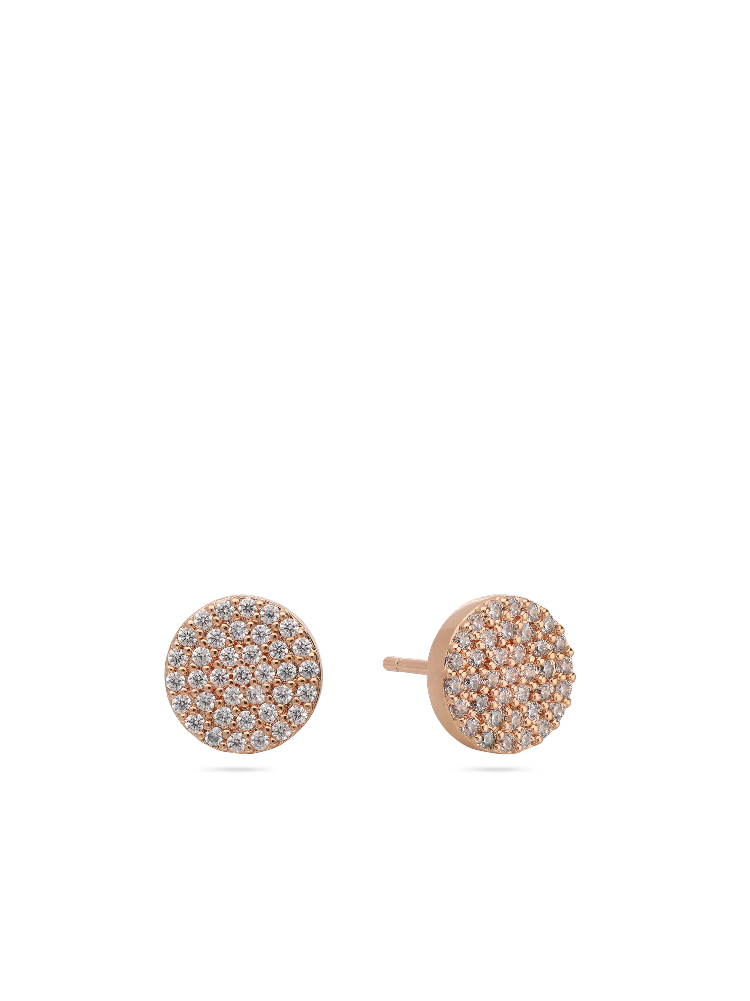 Tuerca, Bañado en oro rosa, Zirconia cúbica artificial, Claro, Círculo, Artificial, Oro rosa, ancho del pendiente: 0.9 cm, longitud del pendiente: 0.9 cm, 1.92 g