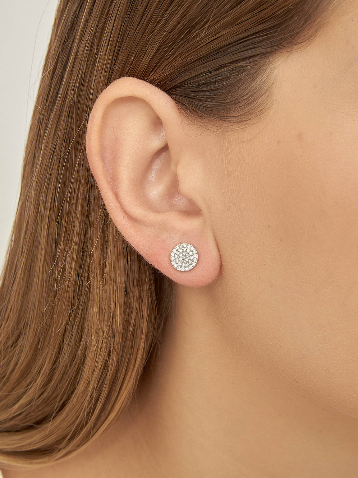 Tuerca, Plata 925 bañada en rodio, Zirconia cúbica artificial, Claro, Círculo, Artificial, Color plateado, longitud del pendiente: 0.8 cm, ancho del pendiente: 0.8 cm, 2.11 g
