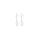 Tuerca, Plata 925 bañada en rodio, Perla cultivada, Blanco, Círculo, Color plateado, longitud del pendiente: 3.0 cm, ancho del pendiente: 0.8 cm, 2.66 g