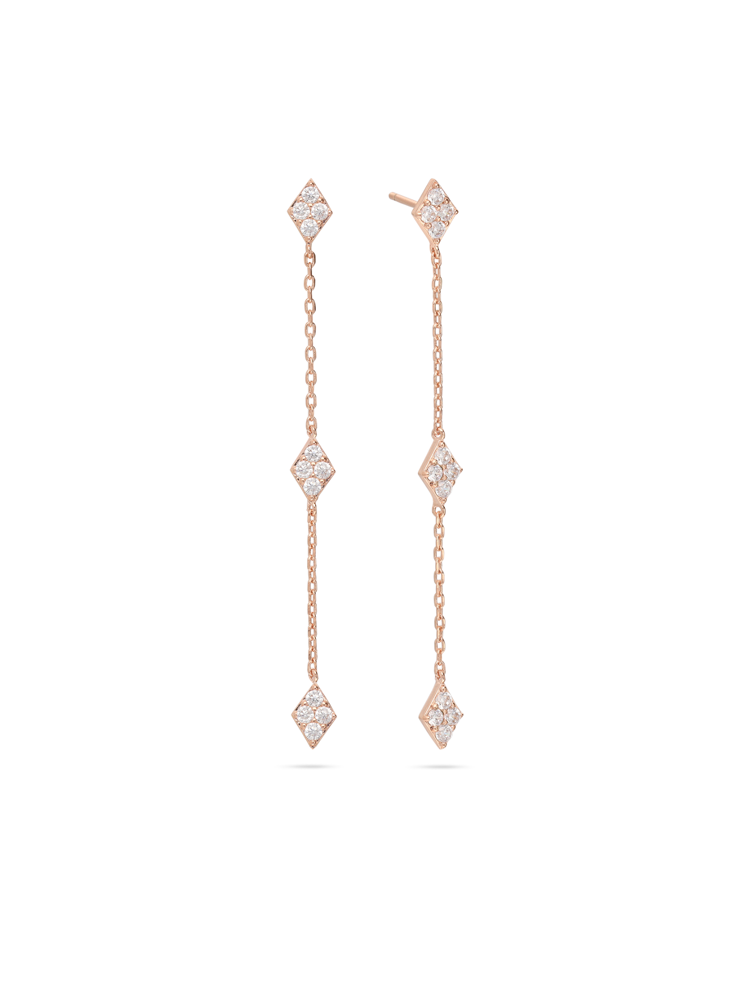 Gotas, Bañado en oro rosa, Zirconia cúbica artificial, Claro, Cuadrado, Artificial, Oro rosa, ancho del pendiente: 0.5 cm, longitud del pendiente: 6.2 cm, 1.84 g