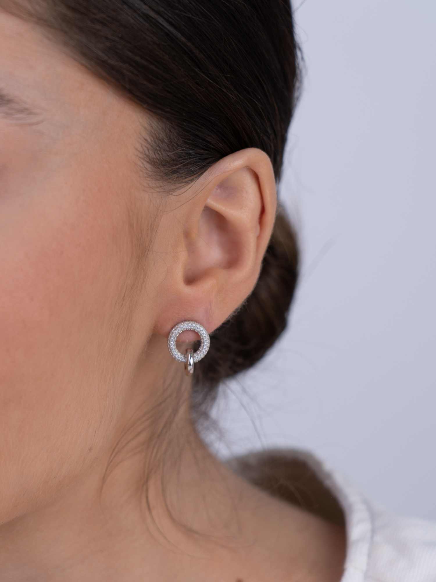 Tuerca, Plata 925 bañada en rodio, Zirconia cúbica artificial, Claro, Círculo, Artificial, Color plateado, longitud del pendiente: 1.4 cm, ancho del pendiente: 1.2 cm, 3.77 g