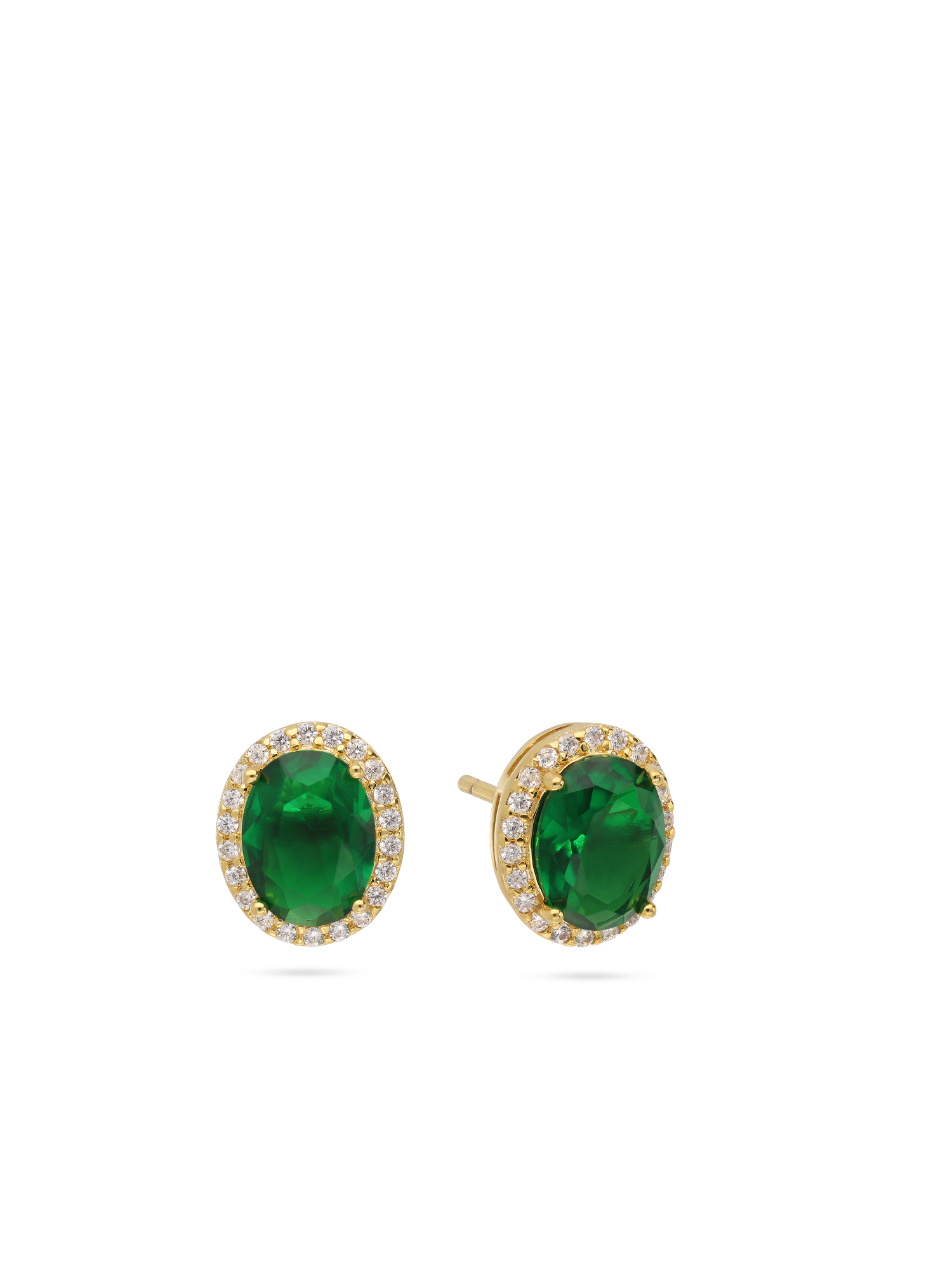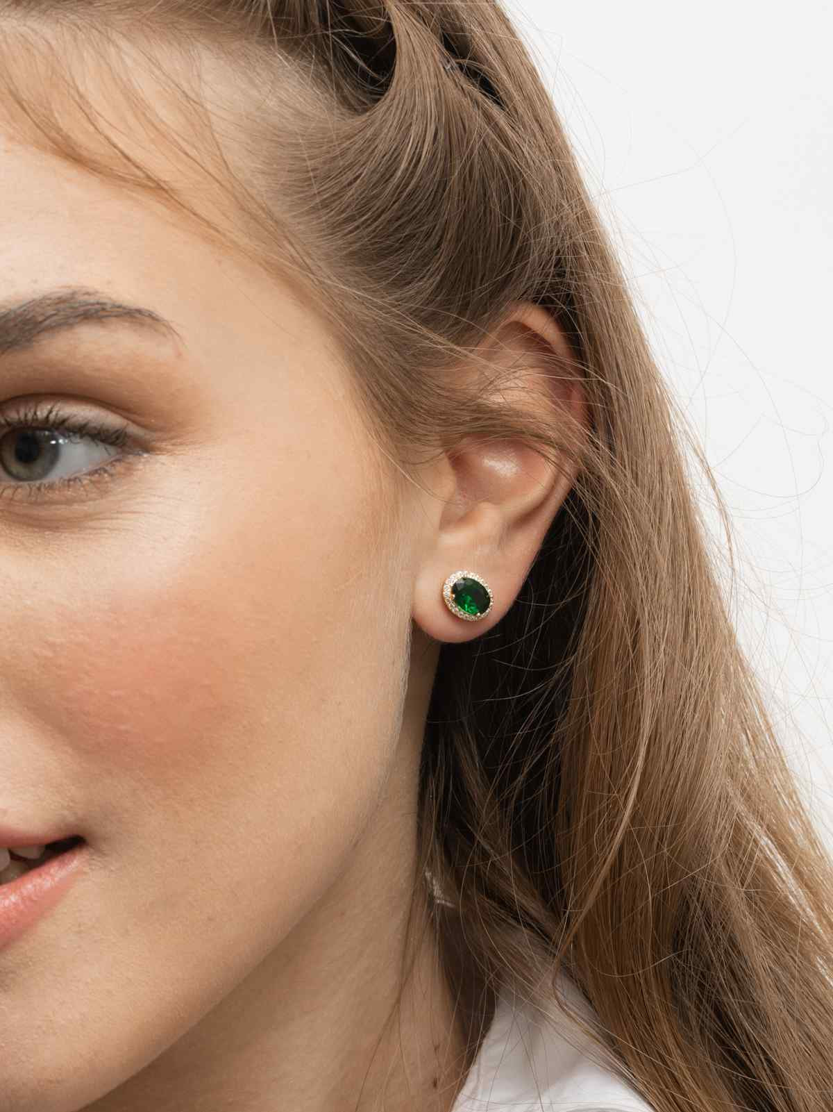 Tuerca, Bañado en oro, Zirconia cúbica artificial, Verde, Claro, Círculo, Artificial, Color dorado, longitud del pendiente: 1.0 cm, ancho del pendiente: 0.8 cm, 1.77 g