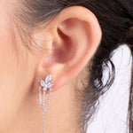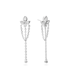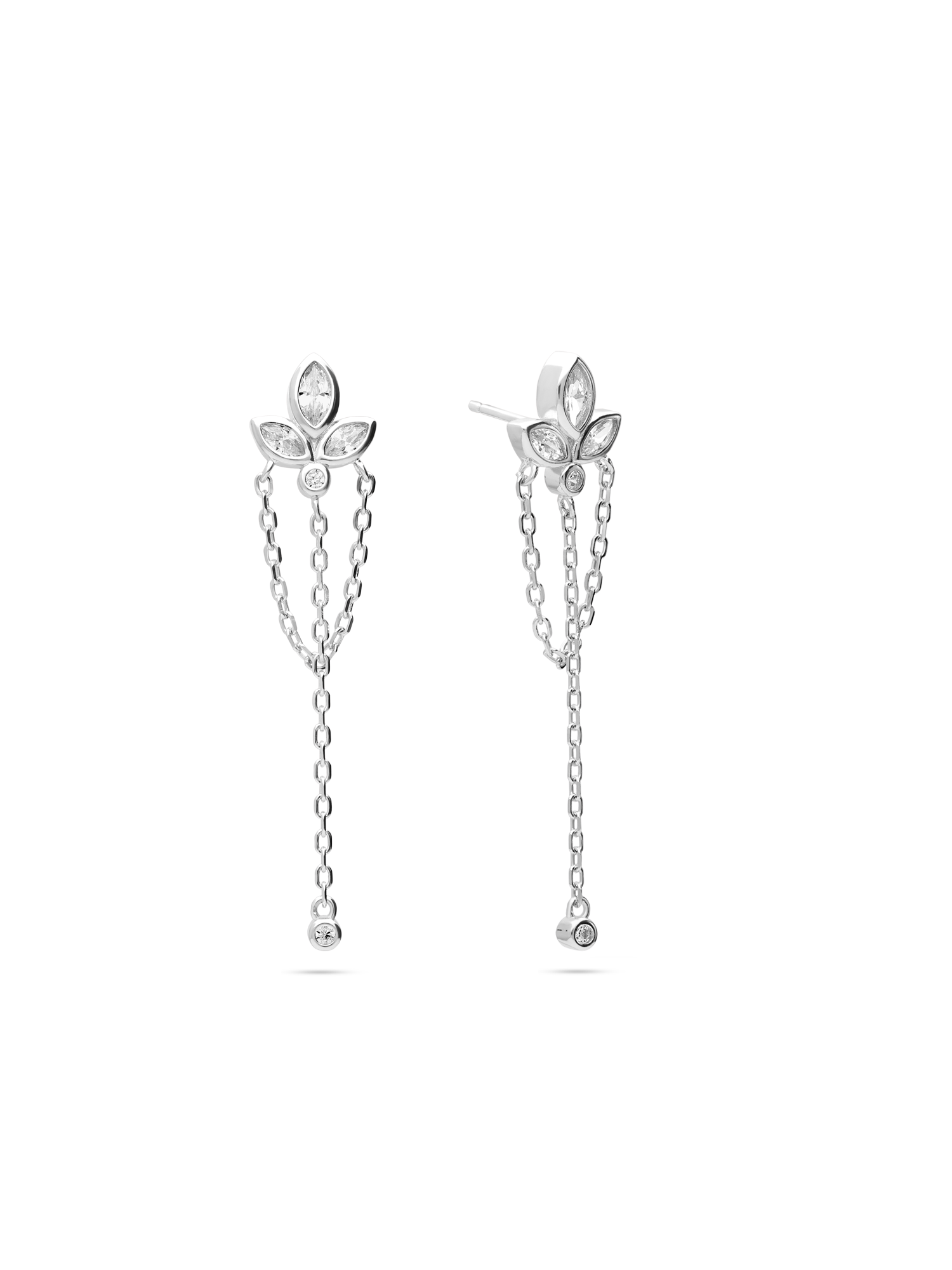 Gotas, Plata 925 bañada en rodio, Zirconia cúbica artificial, Claro, Flor, Artificial, Color plateado, longitud del pendiente: 4.5 cm, ancho del pendiente: 0.9 cm, 2.86 g